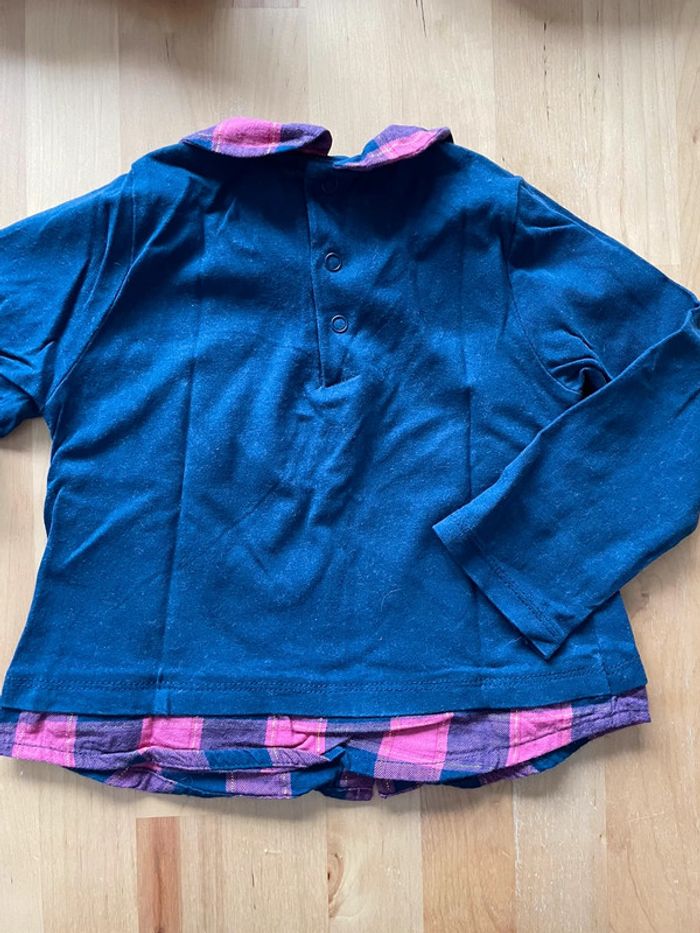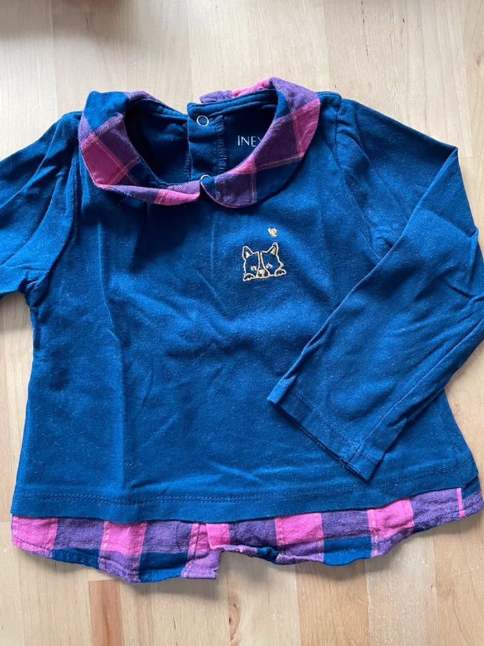 Tshirt manches longues in extenso 12 mois col claudine / carreaux motif renard fibres doré porté 1 fois Fille 12 mois #ingridblogmode12mois 📦 Envoi soigné 🏠 Non fumeur