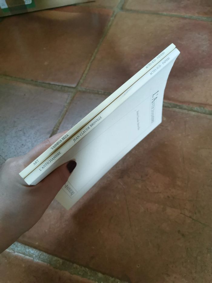 Lot de 2 livres Actes Sud ~papiers Art de Yasmina Reza, 62 p., 1994 et l'Antichambre de Jean-Claude Brisville, 71 p. , 1991, le lot n'est pas dissociable et le poids du lot fait 213g. Les livres sont en très bon état à l'intérieur, les couvertures sont un peu marquées (voir les photos). #actessud #yasminareza #lantichambre #art #jeanclaudebrisville