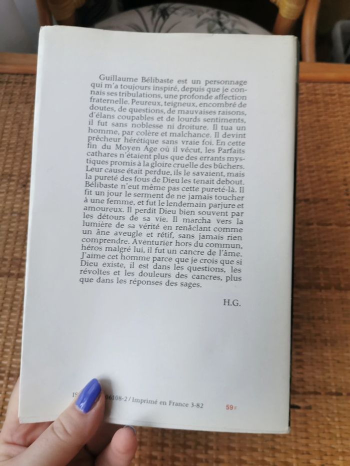 Belibaste, roman de Henri Gougaud, éd. Seuil, 1982, 287 p., 333g. Le livre est en très bon état général, sur la tranche a une tache et signature à la première page. Le livre est dans la jaquette, dans la couverture souple. #belibaste #roman #livre #seuiledition #henrigougaud