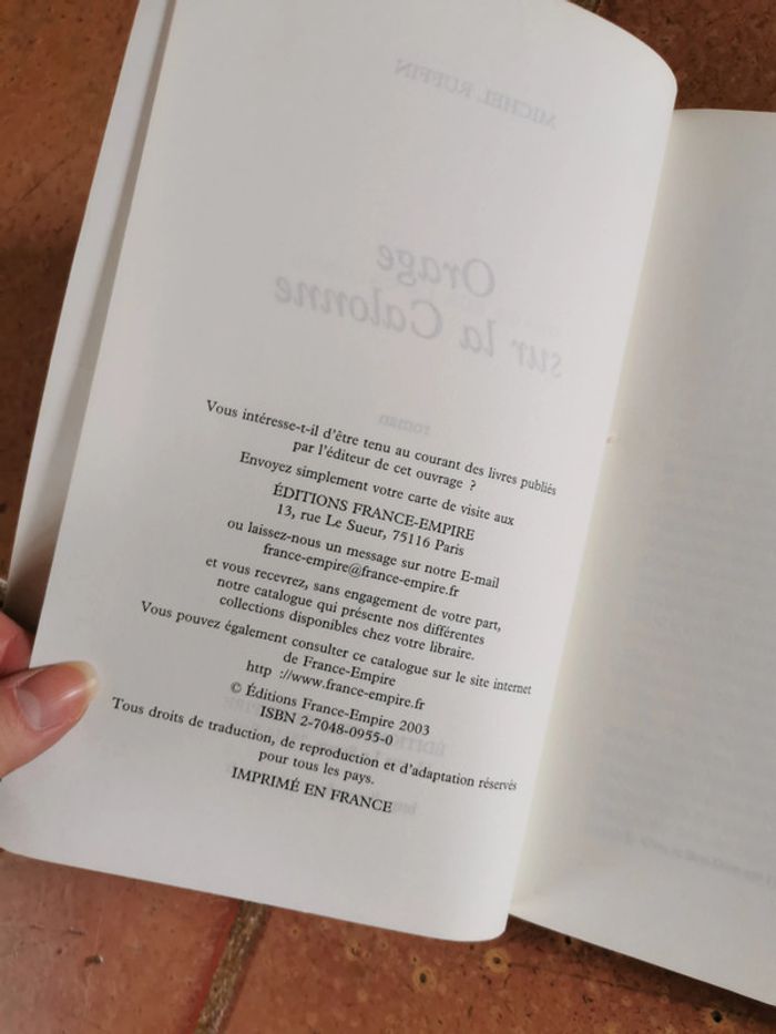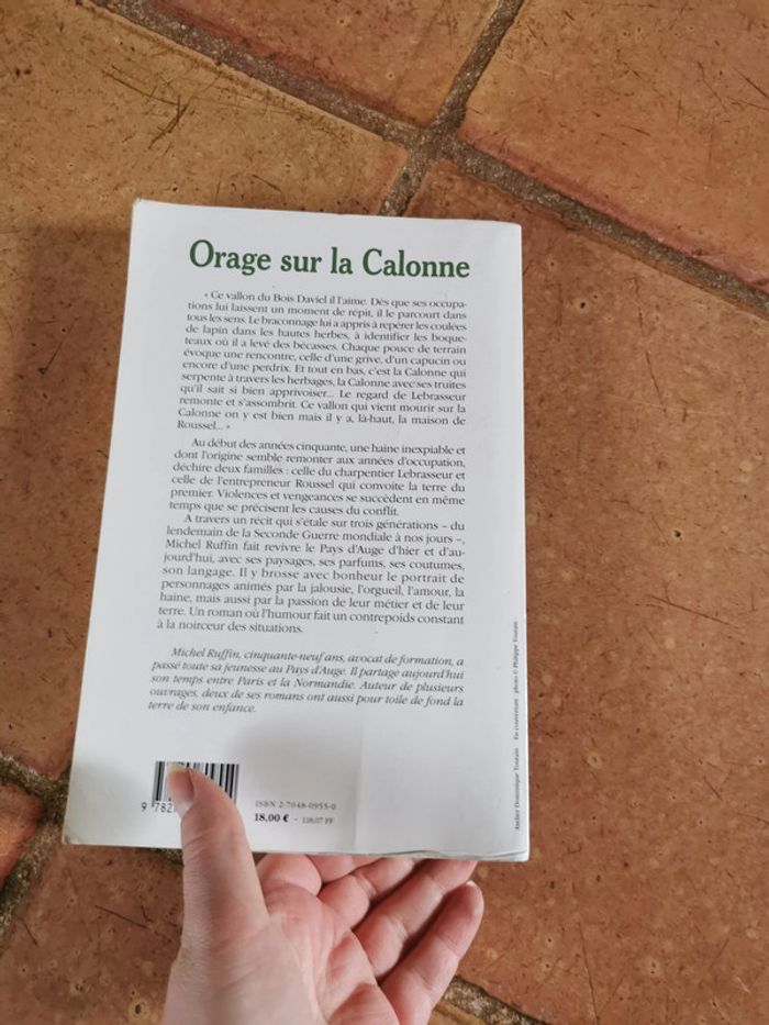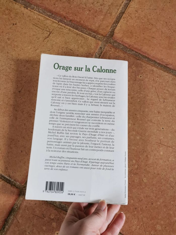 Orage sur la Calonne, roman de Michel Ruffin, éd. France-Empire, format brochet, couverture souple, 2003, 260 p., 375 g. Le livre est en bon état général, la tranche est tachée par jaunissement. #orage #oragesurcalonne #michelruffin #franceempireeditions
