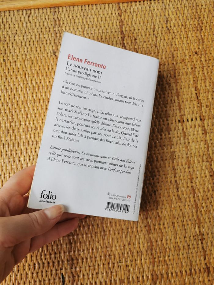 Elena Ferrante, l'Amie Prodigieuse II. Le nouveau nom, livre de poche, collection Folio, 2018, 622 p., 340 g. Livre comporte des jaunissement sur la tranche et les marques sur la couverture, bon état général. #lamieprodigieuse #amiprodigieuse #elenaferrante #lenouveaunom #folio #livredepoche