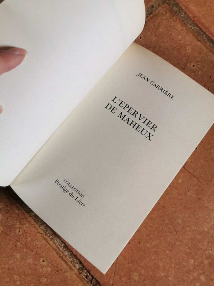 L'épervier de Maheux, livre de Jean Carrière, col. Préstige du Livre, 1977, 318 p., 426 g. Beau livre dans la couverture rigide, en très bon état sans tenir compte des jaunissmeent des pages et de la tranche. #lepervierdemaheus #jeancarriere #leprestigedulivre
