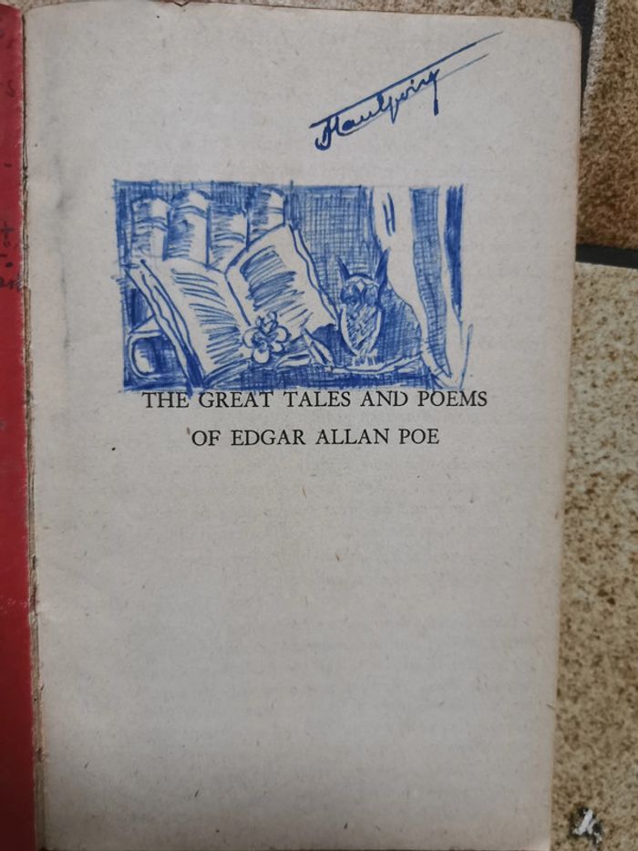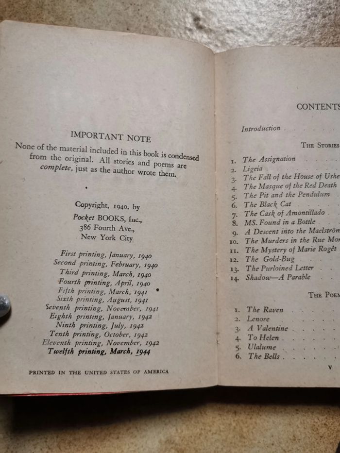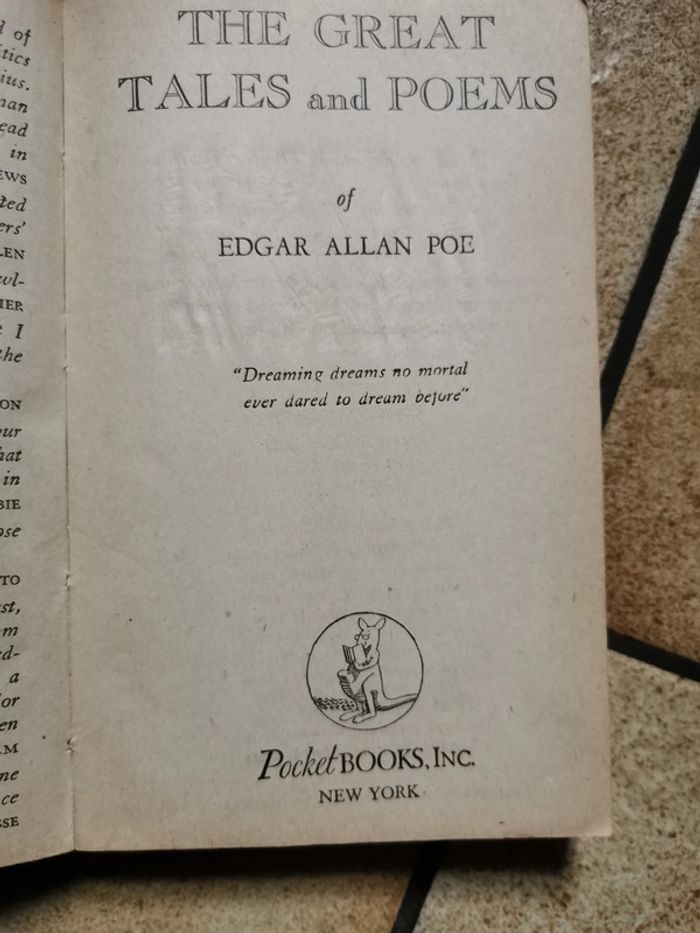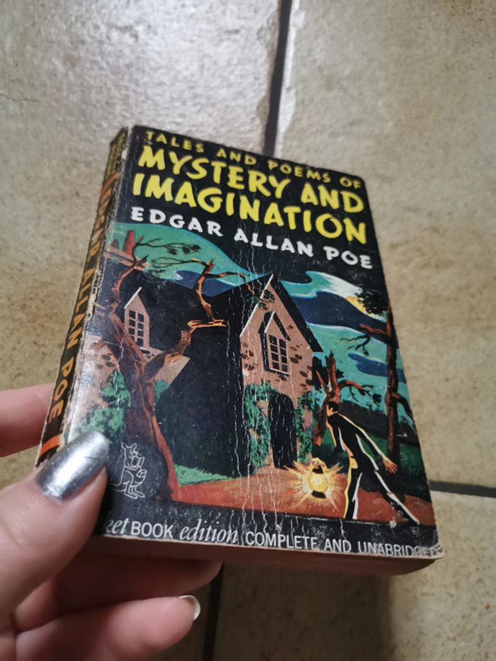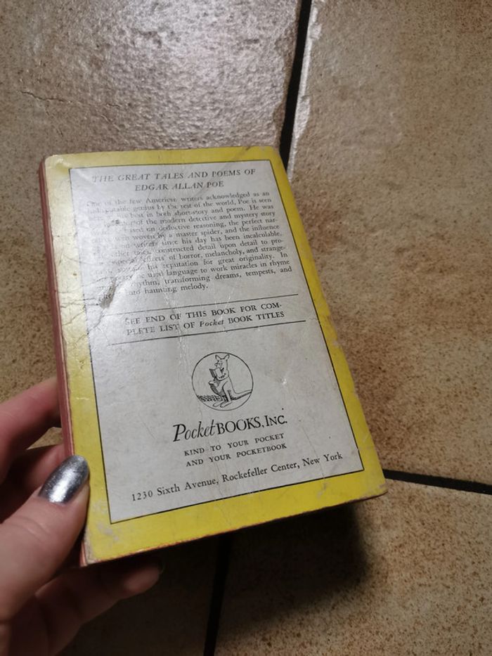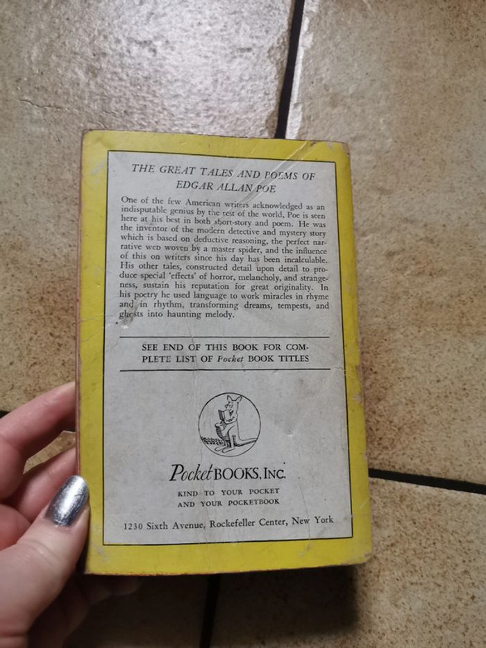 Tales and Poems of Mystery and Imagination, Edgar Allan Poe, édition du 1944, printed in USA, pocket books, 360 p., 176p. Livre de poche en anglais avec la couverture cartonnée, le livre est assez rare et en état satisfaisant car comporte les écritures, les dessins et la couverture est marquée par les pliures. #allanedgarpoe #talesandpoems #livreanglais #anglais #livreenanglais #livredepoche