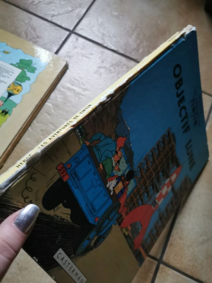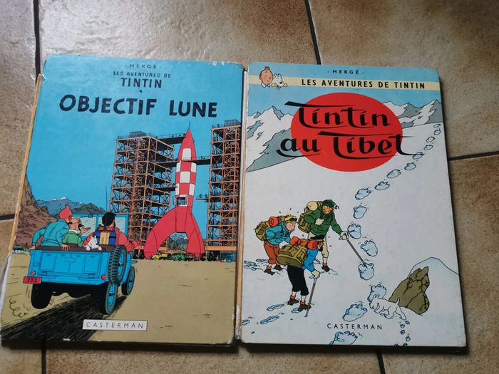 Lot de 2 BD : 1. Les Aventures de Tintin. Tintin au Tibet, 1960, éd. Casterman, Hergé, 61p., 415g, prix 20€, état satisfaisant, la couvertiure se détache, comporte des taches de jaunissement. 2. Les Aventures de Tintin, T1, Objectif Lune, Hergé, éd. Casterman, 1953, 62 p., 433g., prix 20€, état satisfaisant, la couvertiure se détache, comporte des taches de jaunissement. Pièces rares. Les remises sont faites automatiquement à partir de 2 articles achetés. #tintin #lesaventuresdetintin #bdtintin