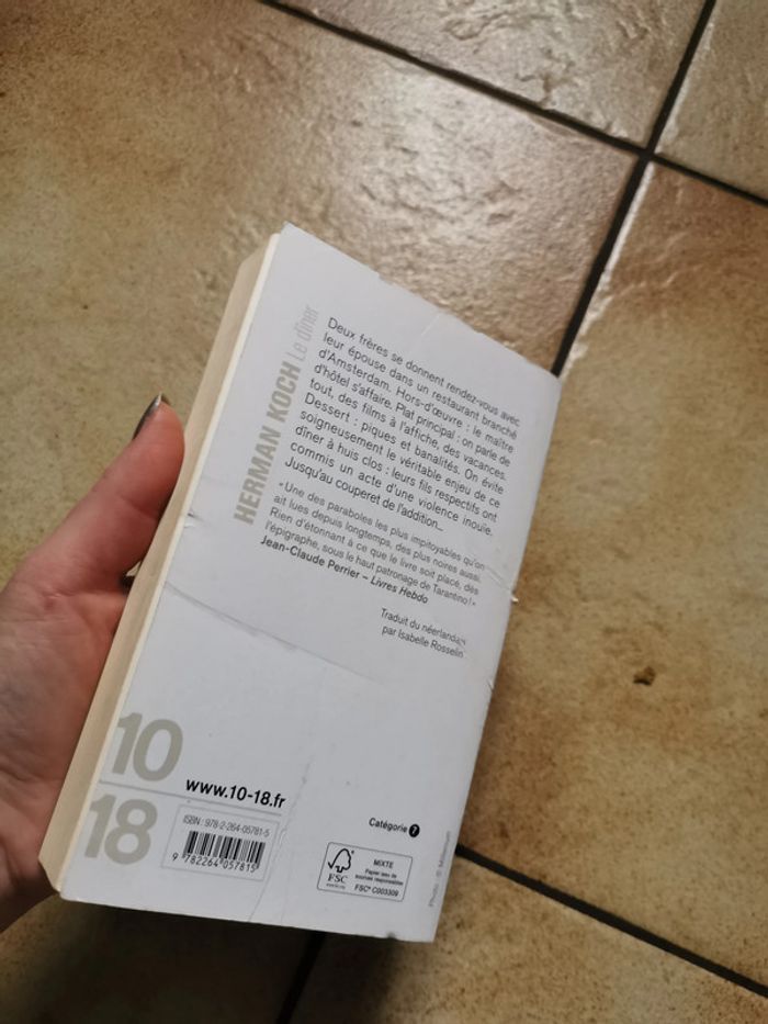 Le dîner, livre de Herman Koch, format poche, éd.10|18, 2013, 355 p., 236 g. L'intérieur du livre est en très bon état, extérieur satisfaisant car la couverture est abîmée. (pliure et fissures, voir les photos) #lediner #livredepoche #edititons1018 #hermankoch