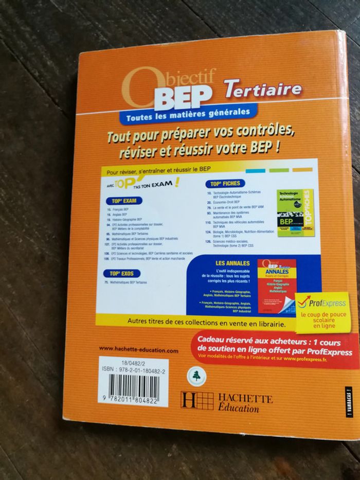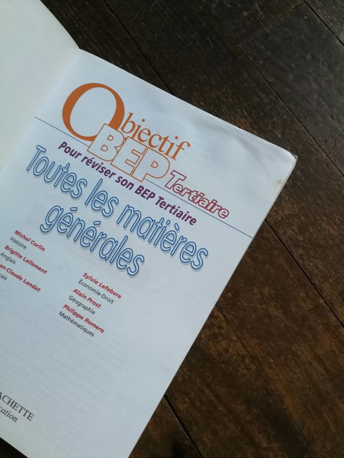 Objectif BEP Tertiaire Toutes les matières générales, éd. Hachette éducation, 2007, 223 p., poids 500 g. Le livre manuel de cours, méthodes et exercices corrigés de Français, Histoire-Géographie, Anglais, Mathématiques, Economie-Droit. Le livre est en bon état, juste les marques de l'humidité présententes sur quelques premières pages, sans odeur, le livre est sec et ça ne se voit pas beaucoup. #livremanuel #livrebep #beptertiaire #hachette