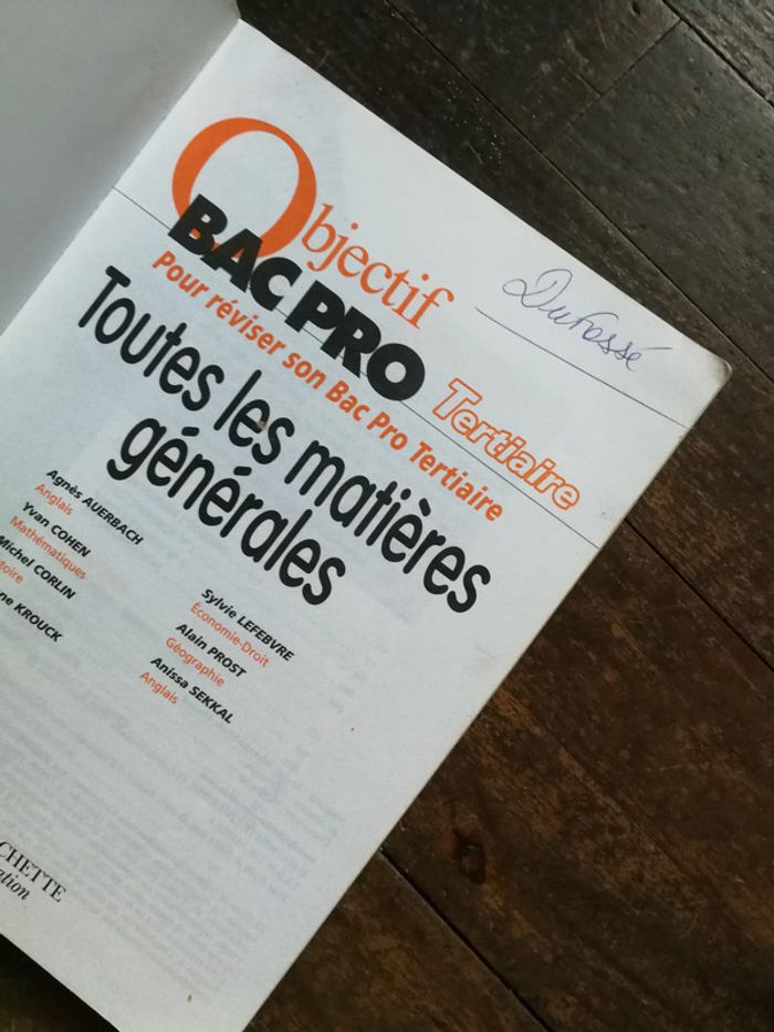Objectif Bac Pro Tertiaire Toutes les matières générales, éd. Hachette éducation, 2004, 223 p., 500 g. Le livre, manuel des cours, méthodes et exercices corrigés,Français, Histoire-Géographie, Anglais, Mathématiques, Economie-Droit? Le livre est en bon état général, a pris l'humidité la dernière page et la couverture marquées seches et sans odeur, les 30 premières pages comportent des surlignements. #livrebacpro #bacpro #exercices #maths #mathematiques #histoire #geographie#droit #economie #hacchette #manuelexercices