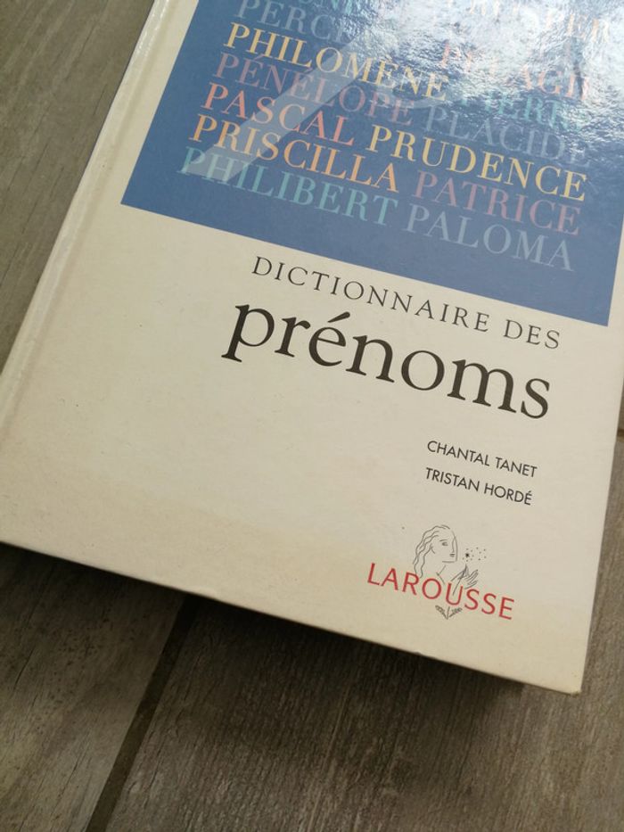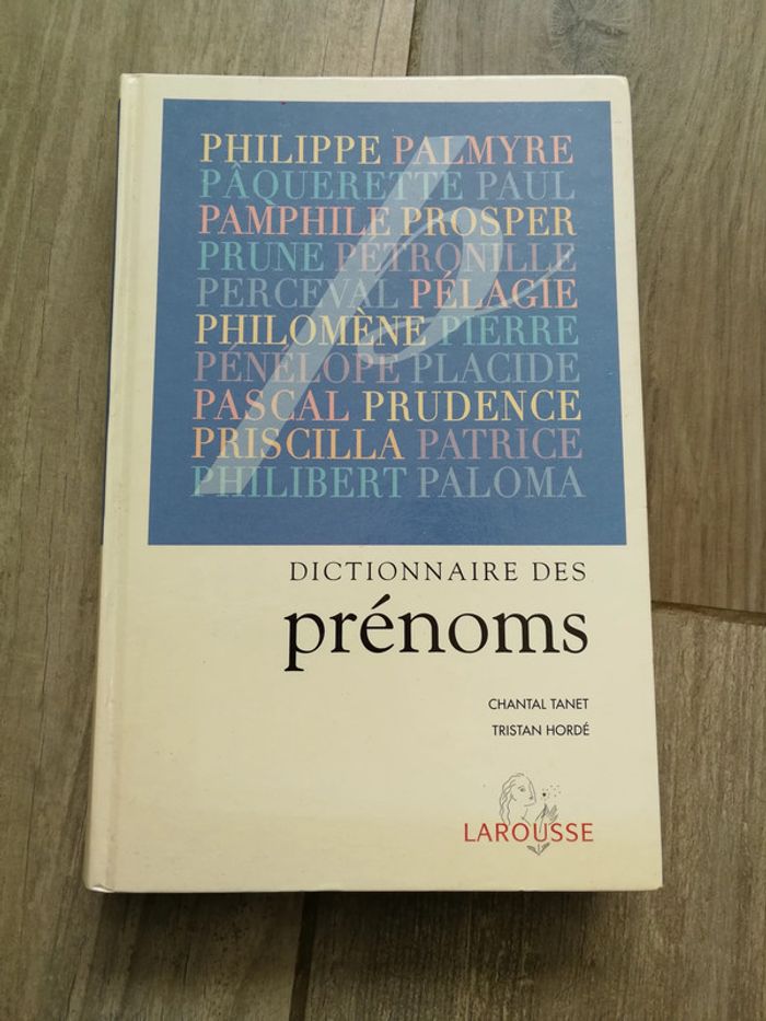 Dictionnaire des prénoms de Chantal Tanet et Tristan Hordé, éditions Larousse, 2000, 480 p., 1,1 kg. Le beau livre dans la couverture rigide en très bon état comme neuf, juste un légér jaunnissement en bas de couverture. #dictionnairedesprenoms #prenoms #dictionnaire #larousse