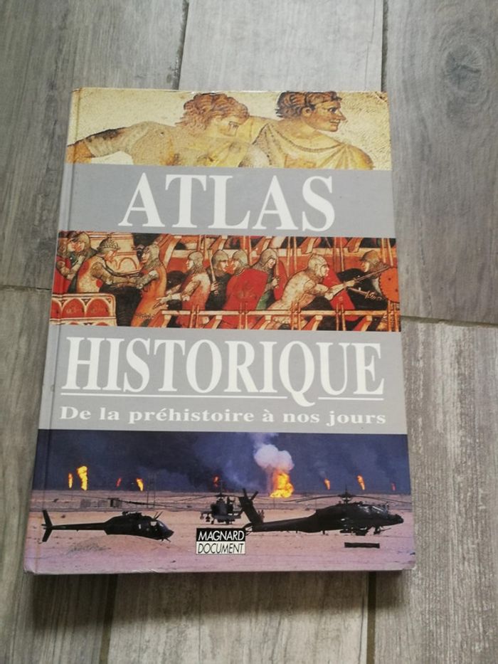 Atlas Historique de la préhistoire à nos jours, éditions Magnard document, , 1991, 200 p., poids 1kg. le livre est en très bon état, comporte une écriture sur la première page grise (voir sur les photos) , dans la couverture rigide, un peu incurvé car mal posé. #atlas #livrehistoire #ivregeographie #livreprehistoire #livrepréhistoire