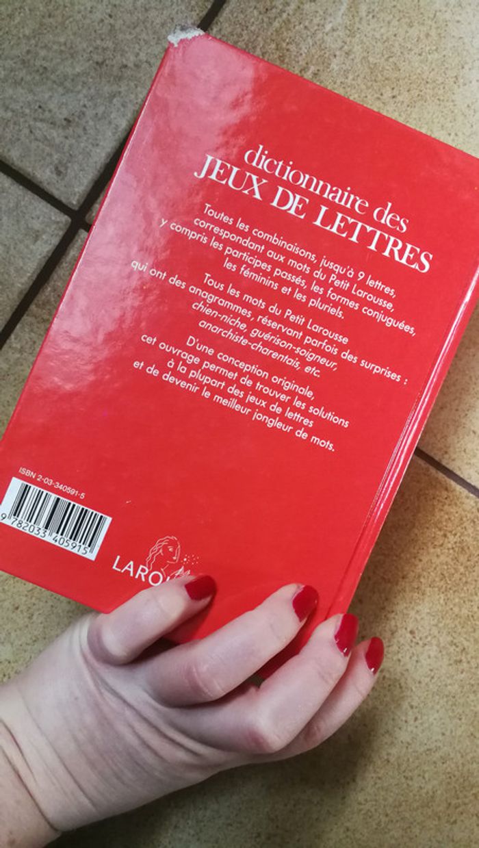 Dictionnaire des jeux de lettres Larousse, 151000 anagrammes, 1993, 1022 p, pèse 1,102kg. Il est en très bon état, une accroche sur un angle au dos et la tranche est un peu jaunit, l'intérieur est blanc, impeccable. #dictionnairedelettres #dictionnairelarousse #larousselettres #jeuxdelettres #scrable #anagrammes