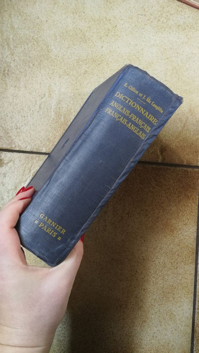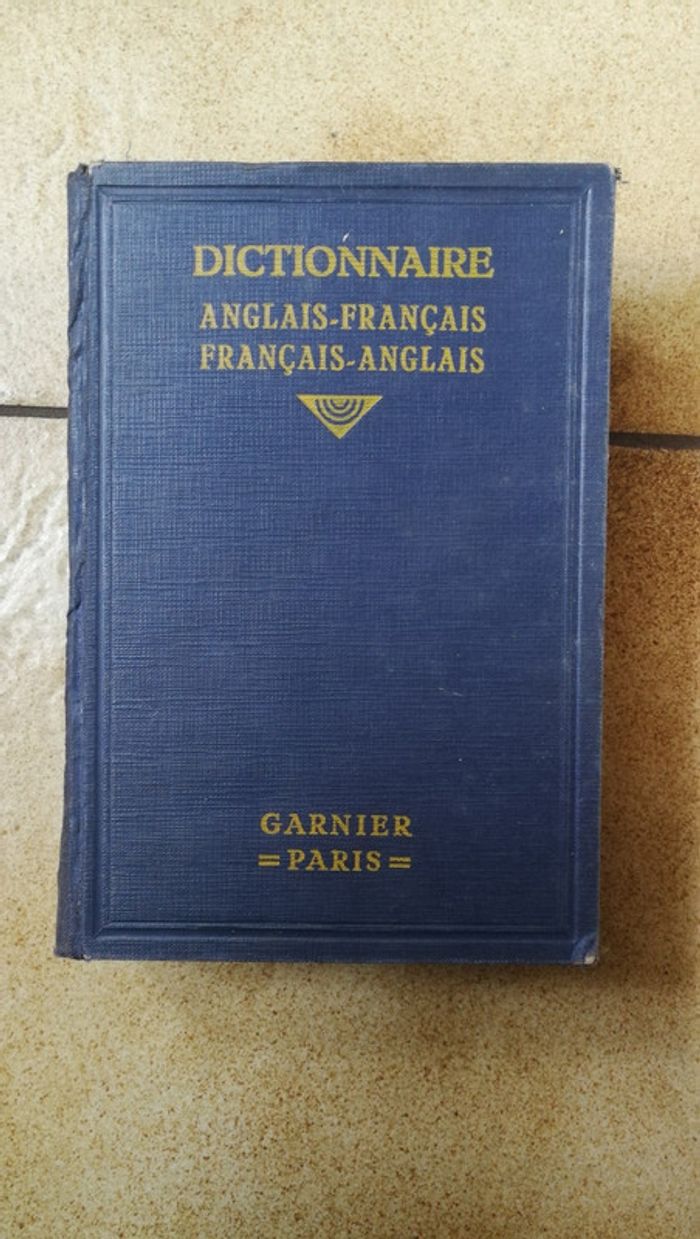 Dictionnaire anglais-français, français-anglais, éditions Garnier Paris, 595 p, année inconnu, son poids fait 1,1 kg. Il est en état satisfaisant, écriture sur la première page et la couverture rigide se décolle, la tranche jaunit du au temps, si non bon dictionnaire très utile. #dictionnaireanglais #dictionnairefrancais #anglaisfrancais #francaisanglais #dictionnaireancien
