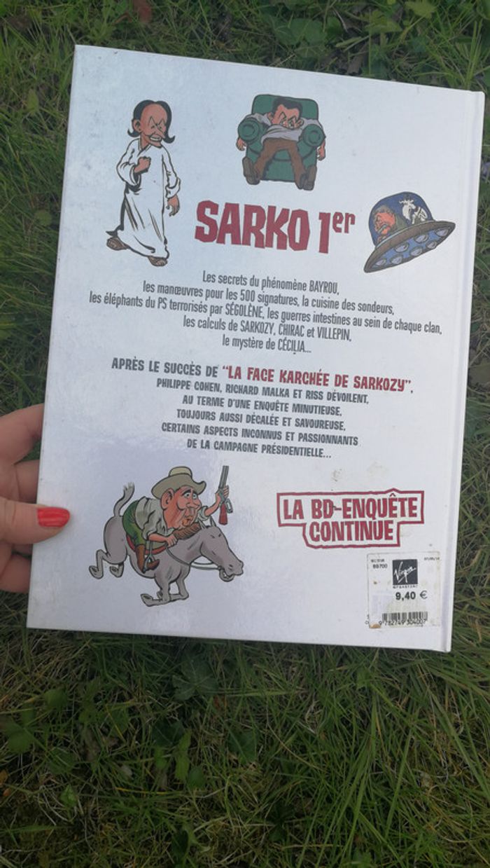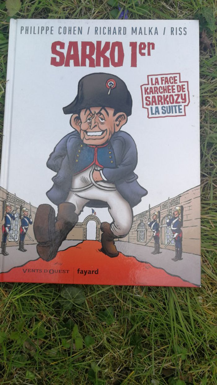 BD Sarko 1er. La face cachée de Sarkozy la suite, livre de Philippe Cohen/Richard Malka/RISS, éditions Fayard, 2007, 37 p., poids 420 g. Livre en bon état général, malgré qu'il aie pris de l'humidité, mais il est sec, sans odeur et en bon état, juste les pages ne sont pas très plates. Le prix tient compte de son état. #bdsarko1er #bdsarko #bdpolitique #bdfayard #fayard #livrebd #livresarkozy #bdsarkozy