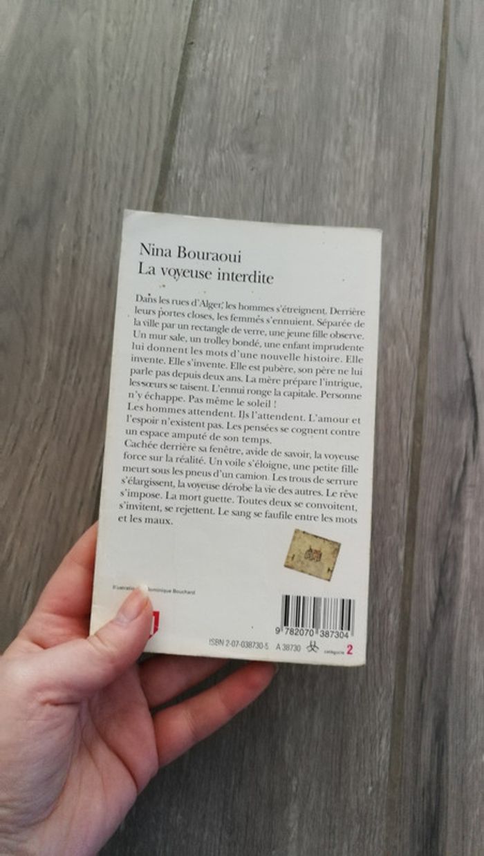La voyeuse interdite de Nina Bouraoui, format poche Folio, éditions Gallimard, 1993, 142 p., 70 gr. Livre d'occasion, traces d'usures dû au temps. #livreclairecamay #petitpris #1euroclairecamay #folio #ninabouraoui #poche #livrepoche #gallimard