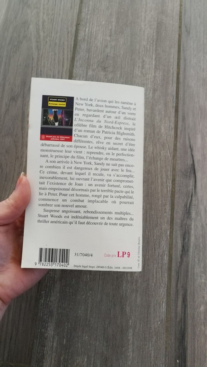 Echange mortel de Stuart Woods, grand prix de littérature policière 1997, livre de poche, éditions de fallois, 1995, 312 p. , 200 gr. Livre en bon état général : un petit enfoncement sur le côté et une petite tache noir sur la tranche. #livreclairecamay #echangemortel #livredepoche #2eurosclairecamay #stuartwoods