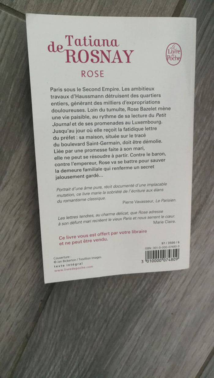 Rose de Tatiana de Rosnay, livre de poche, année 201, 249 p. Occasion, bon état, juste les coins de la couverture sont légèrement pliés. Poids 150 gr #petitprix #livrclairecamay #3eurosclairecamay #rose #tatianaderosnay #poche #livrepoche #roman