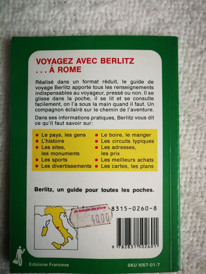 Rome, Italie, Berlitz guide de voyage, la collection de poche mondialement connue, en très bon état. 13e édition (1989/1990) 128 p #petitprix #livresclairecamay #2eurosclairecamay #berlitz #guide #italie #rome #tourisme #voyage