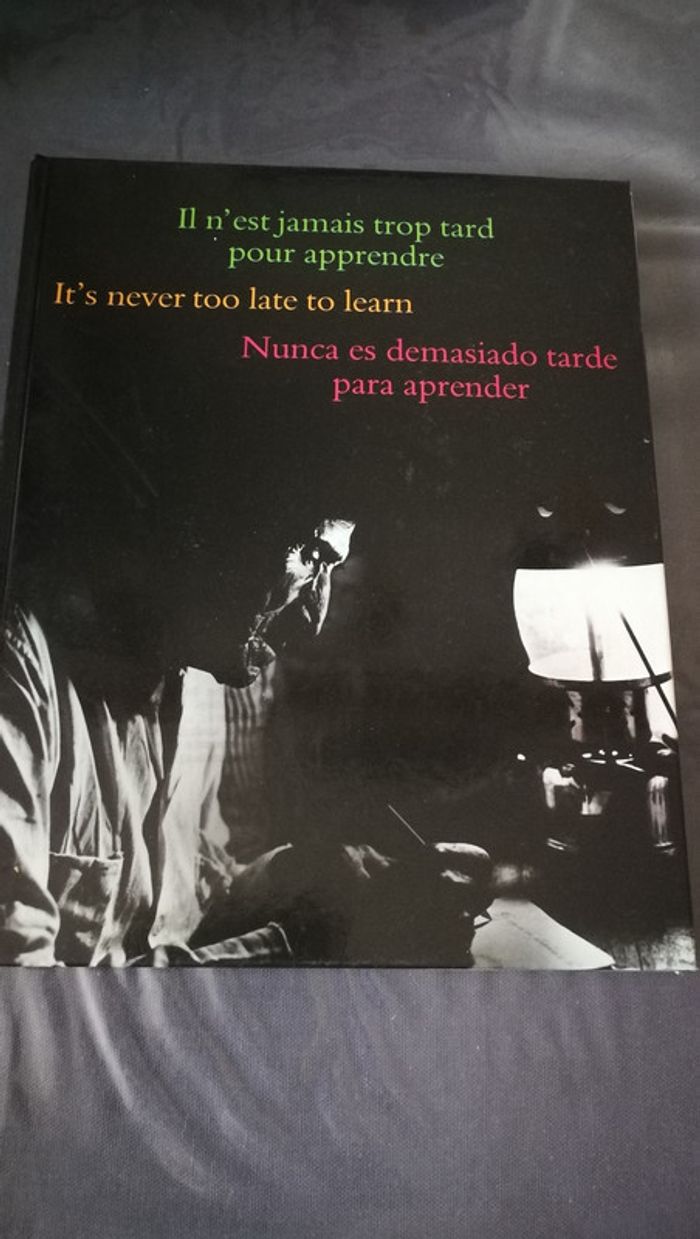 Il n'est jamais trop tard pour apprendre It's never too late to learn Nunca es demasiado tarde para aprender Livre illustré en trois langues : français, anglais et espagnol. Unesco, 1982, Dominique Roger, Monika Jost. C'est un livre qui contient des illustrations et des paroles des gens célèbres : écrivains, peintres, politiciens ets. Il contient 83 p., pèse 600g et est en très bon état. #unesco #livrenunca #livremonikajost #jost
