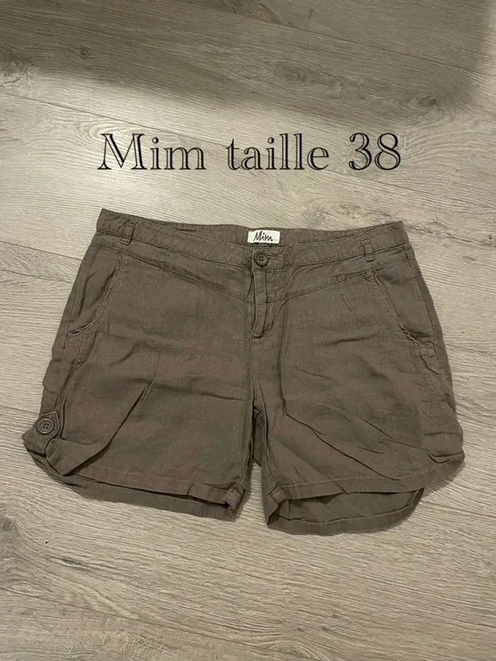 Short léger Mim en lin et viscose Je vends ce short de la marque Mim, parfait pour les journées chaudes d'été. Son tissu léger et sa coupe confortable en font un indispensable. Détails du produit : * Marque : Mim * Taille : 38 (convient à un M) * Couleur : Marron / Taupe * Matière : 55% lin, 45% viscose. (Tissu très agréable à porter, respirant) * Style : Coupe droite, avec des poches cargo sur les fesses et un bouton sur les côtés pour ajuster le bas. * État : Porté quelques fois, très bon état. Aucun accroc ou défaut à signaler. * Son mélange lin et viscose est parfait pour l'été, il est léger et ne tient pas chaud. * Sa couleur neutre est facile à assortir avec toutes vos tenues. * La coupe est à la fois décontractée et stylée, idéale pour un look de vacances ou de ville. N'hésitez pas si vous avez des questions ! * #Mim * #Short * #Lin * #Viscose * #Taille38 * #TailleM * #ShortD'été * #Cargo * #Casual * #Léger * #CoupeDroite * #Marron * #Taupe * #Vacances * #Urbain