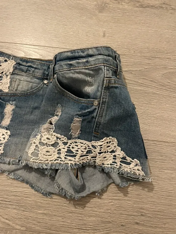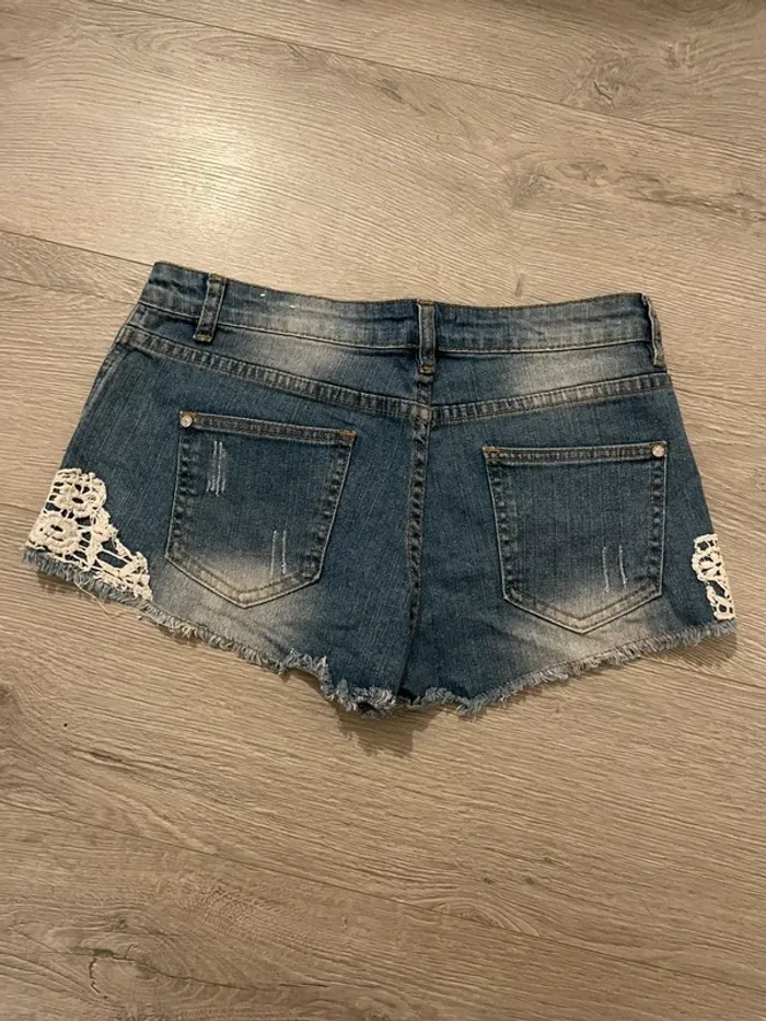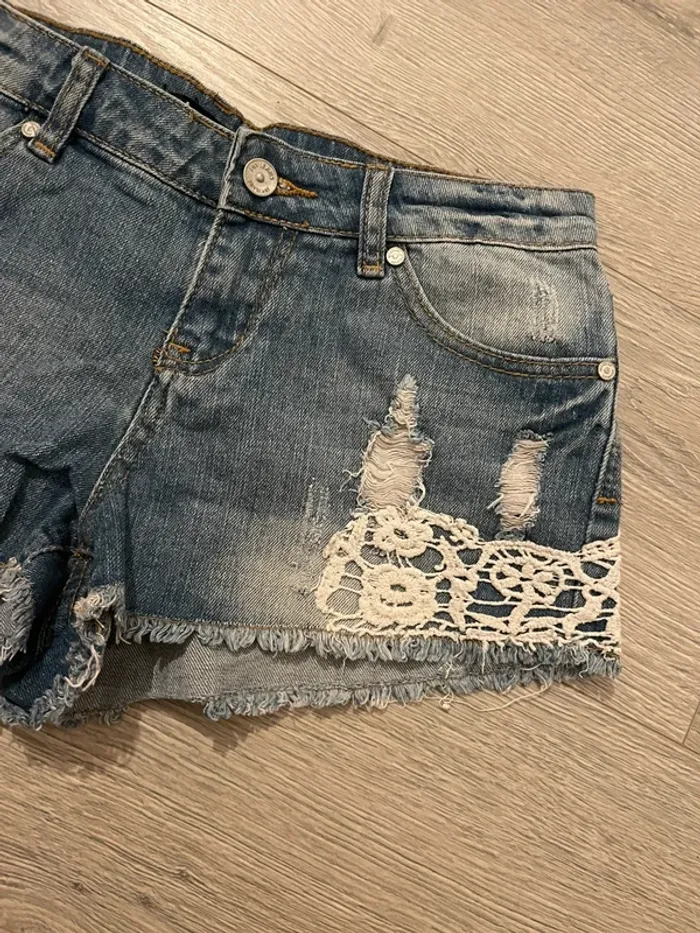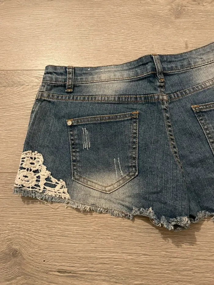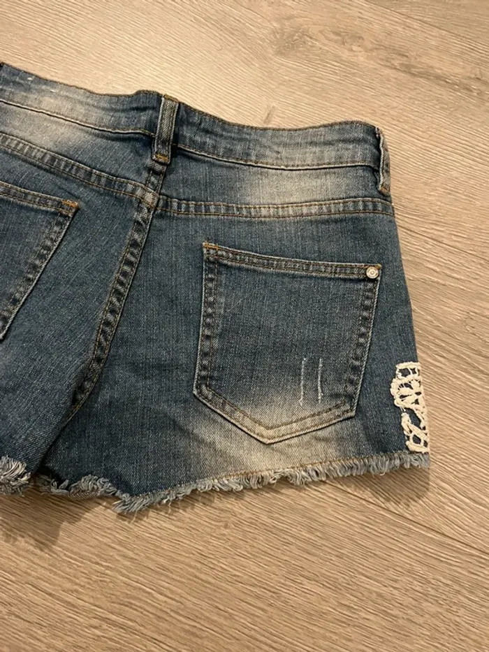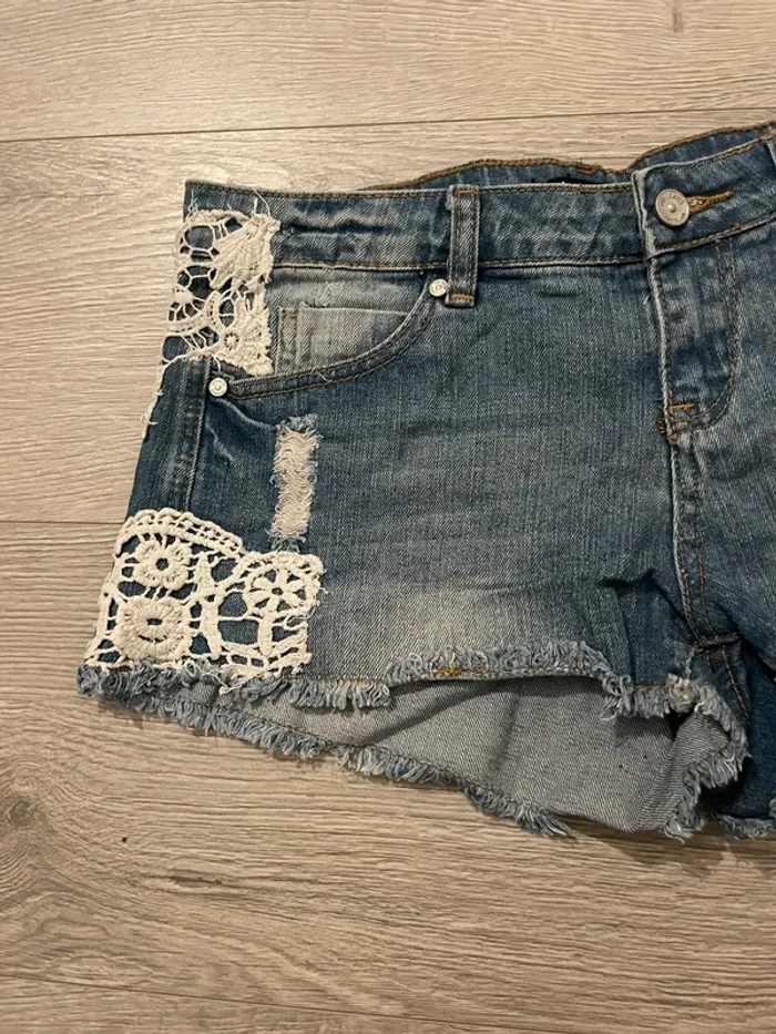 Short en jean bleu Jennyfer taille 34 dentelle blanche - photo numéro 7