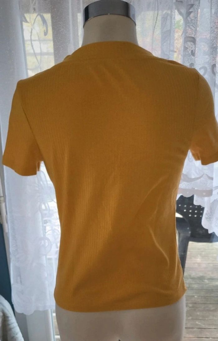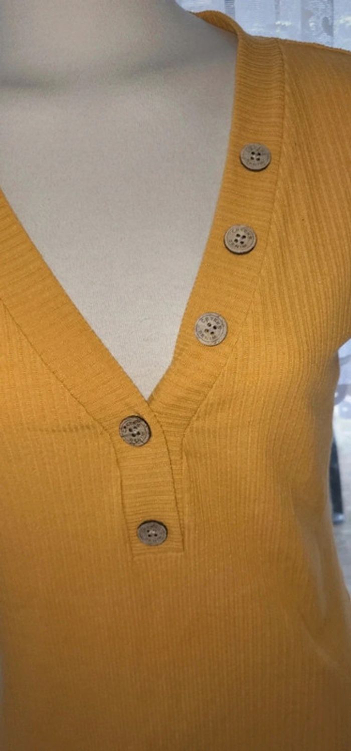 Haut moutarde à manches courtes avec encolure en V – Style et confort réunis - photo numéro 3