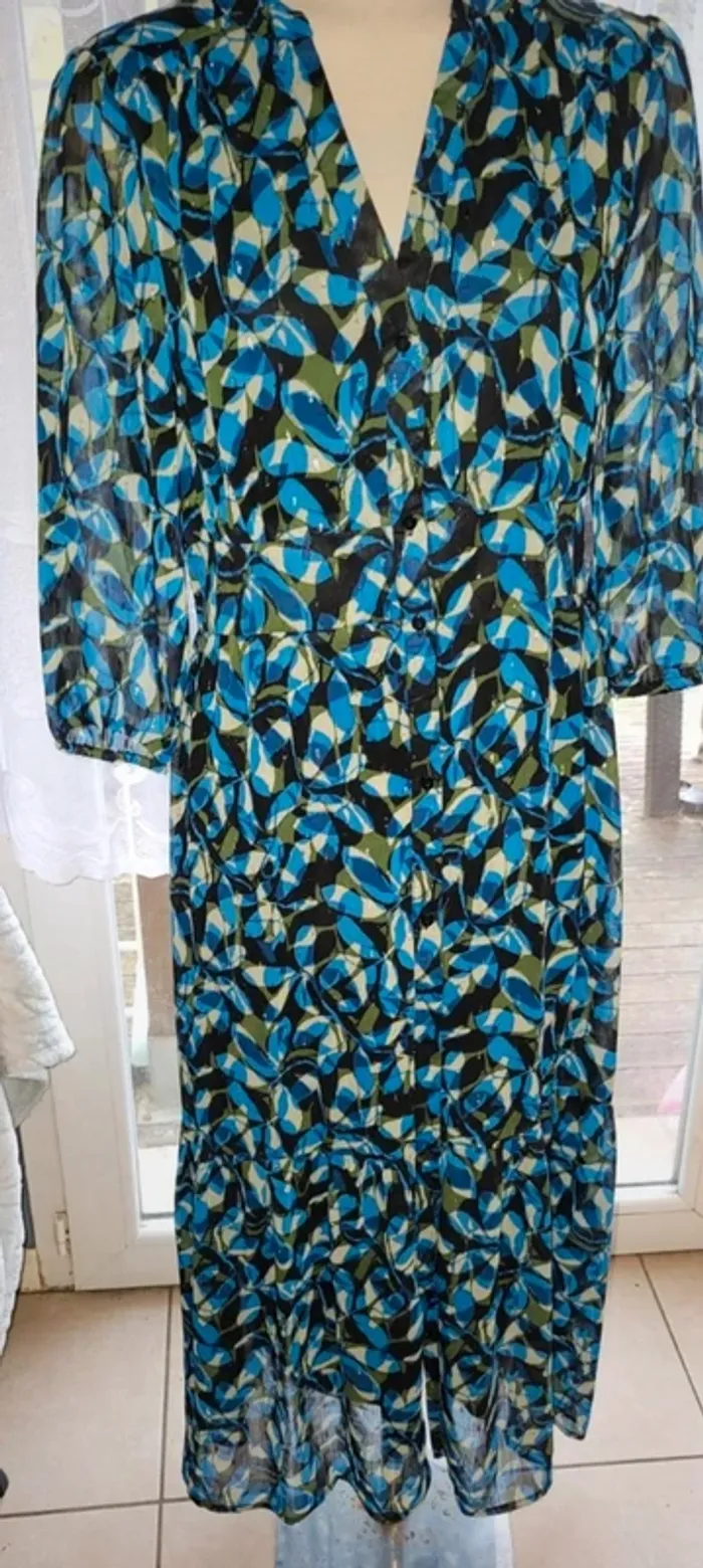 **Description :** Robe longue , manches transparentes, avec fils argenté, boutons jusqu'en bas. Élastique dans la dos.parfaite pour toutes les occasions ! - 💎 **État** : Très bon état - ✂️ **Taille ** : 36/38 - 🌟 **Matière** synthétique, agréable à porté. - 🎯 **Marque** : cache cache Idéale pour un look chic au bureau ou décontracté en sortie. Faites-vous plaisir à prix réduit ! #a2life_taille36 ##a2life_taille38