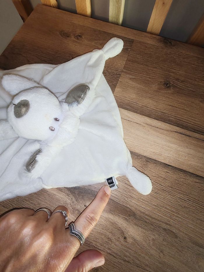 Doudou Mouton Plat Carré Blanc Bandana Marron Tex Tbe Étiquette marque présente 15 euros Envoi en relais