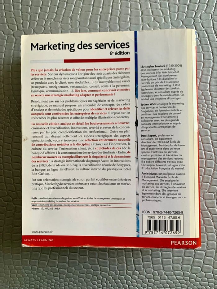 📘 Marketing des services – 6e édition Un manuel clair, complet et actualisé sur les spécificités du marketing dans les secteurs des services (banques, santé, tourisme, etc.). Très utilisé dans les cursus de commerce, marketing et gestion, ce livre fournit à la fois des notions théoriques et de nombreux cas concrets pour bien maîtriser les stratégies marketing propres aux services. 🔹 Édition : 6e édition 🔹 Prix neuf : 47,50 € 🔹 État : Bon état général – quelques traces d'usure sur la couverture, mais intérieur propre et sans annotation 🔹 Idéal pour : étudiants en BTS, licence, master, écoles de commerce ou professionnels du marketing 📚 Un ouvrage de référence accessible, indispensable pour réussir ses examens ou approfondir ses compétences terrain. #benjinantes