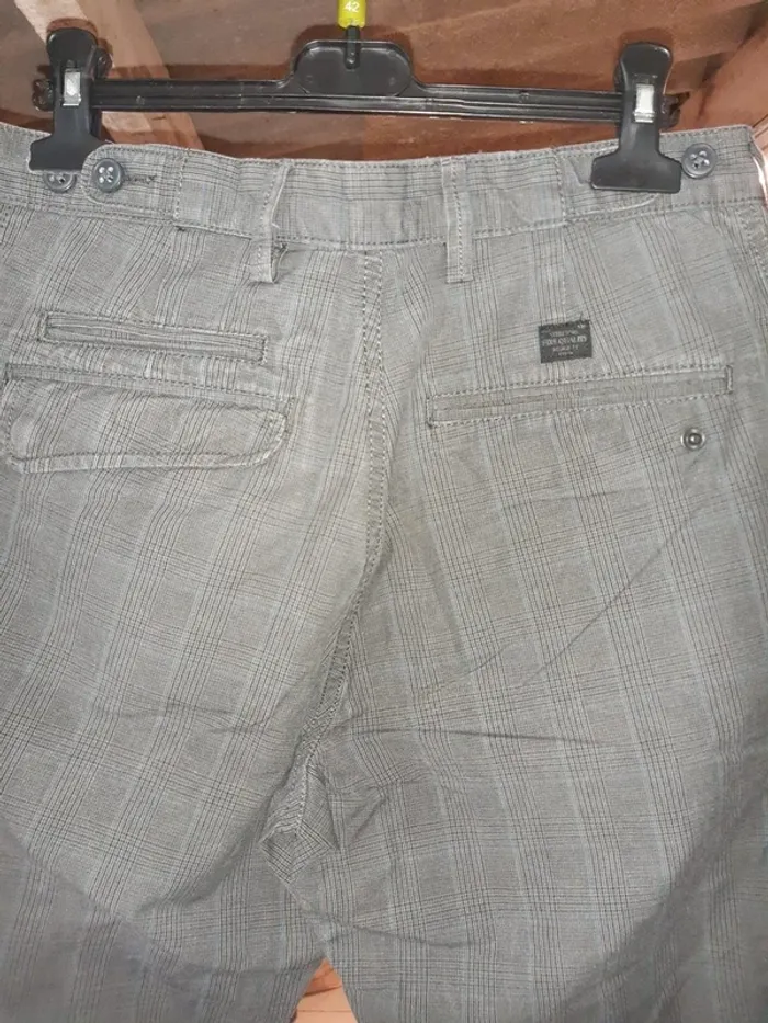 Jolie pantalon chino de couleur gris à carreaux. Pour la couleur se fier à partir de la 2ème photo. Marque Celio. Taille 38. Matière 100% coton. N'hésitez pas à demander de plus amples informations.