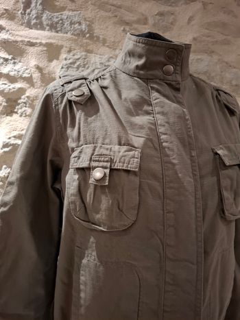 Jolie veste de couleur camel en peau de péche 🍑 et moumoute au niveau du col, du bas et des poignets.
