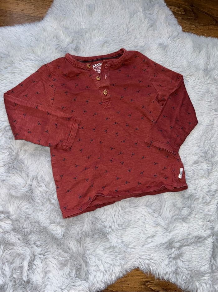 T-shirt à manches longues bordeaux Très bon état Taille 18 mois Marque Kiabi