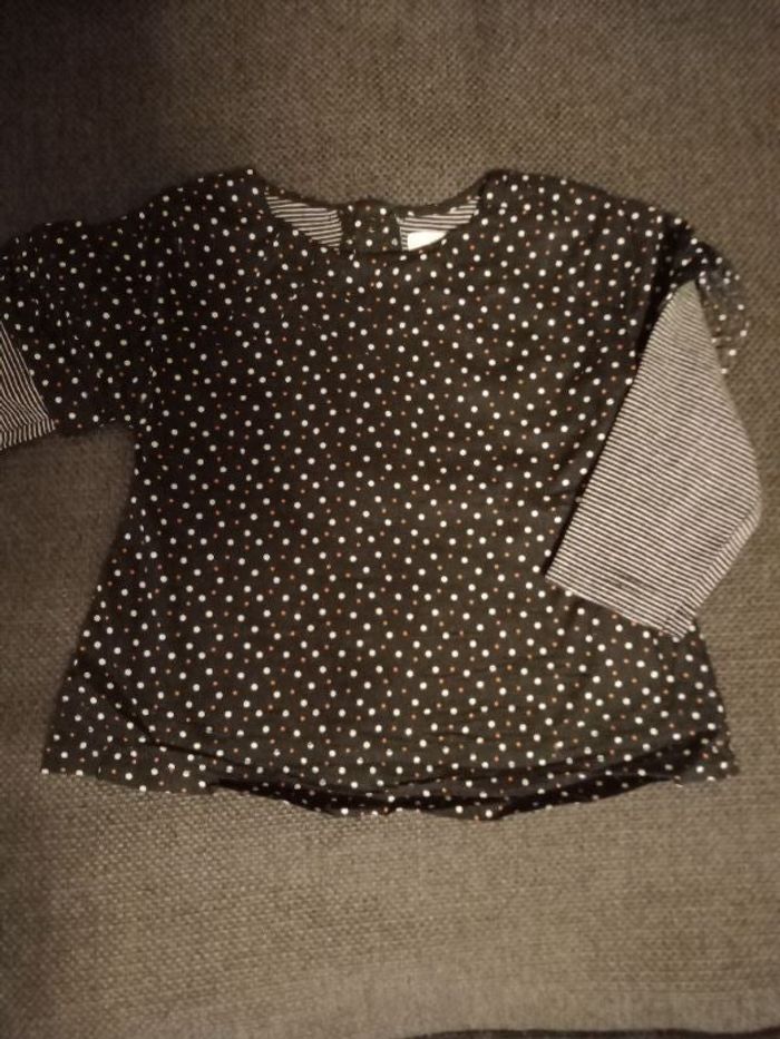 Blouse manches longues noire à pois manches rayées