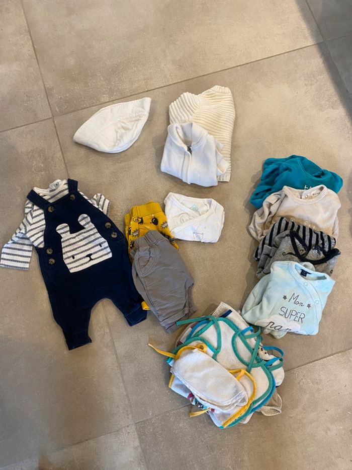 1 ensemble 2 pantalon 1 bodies 4 pyjama 2 gilets blancs 10 bavoirs De toute marque Vendu au détail également #mariecharlotte2_1mois