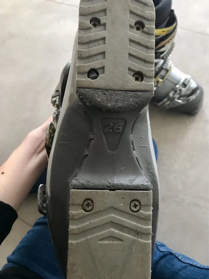 Taille 26 équivalent 40. Bon état La chaussure de ski MISSION ALU de la marque SALOMON, est destiné aux skieurs de niveau intermédiaire qui recherchent du confort pour pouvoir skier toute la journée.Son chausson ThermicFit, s'adapte à la forme de votre pied, soit en le chauffant soit grâce à la chaleur que votre corps dégage, ce qui est encore un gage de confort. Très confortable vend car achat de chaussures plus techniques.
