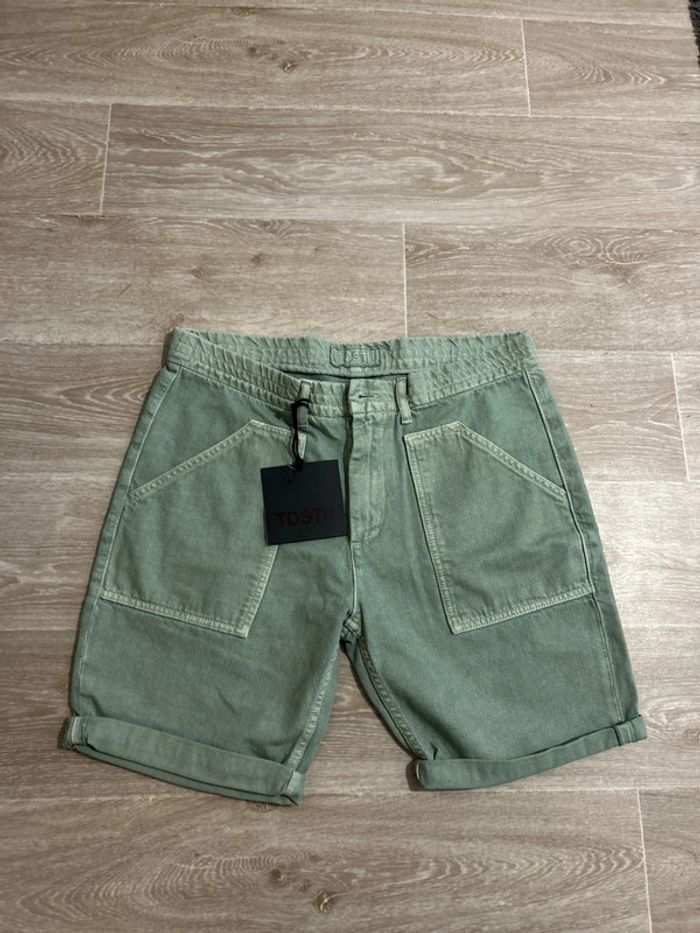 Bonjour, je vous propose ce magnifique short, neuf original, jamais porté de chez Teddy Smith 100 % coton, belle couleur verte, le bouton de braguette est manquant voir la dernière photo, il sera donc à remplacer.