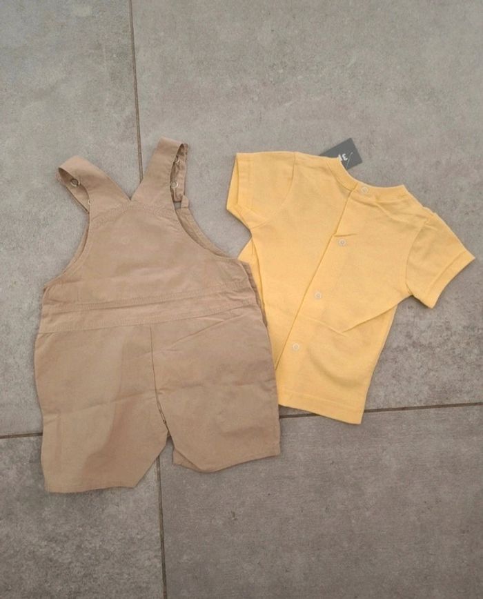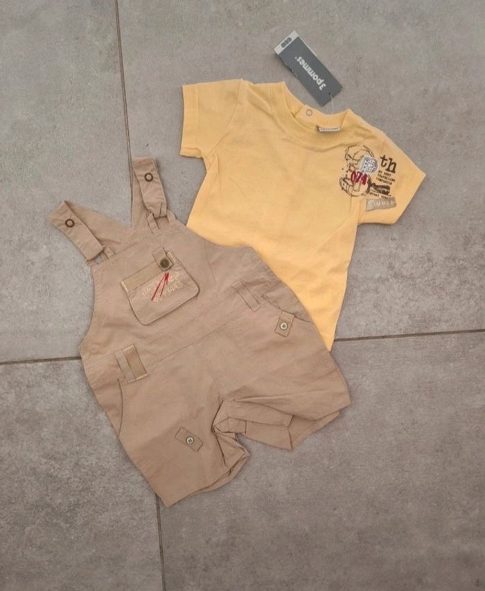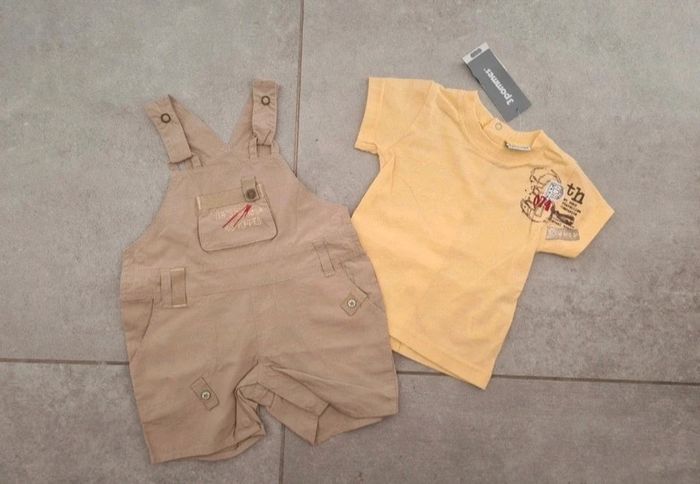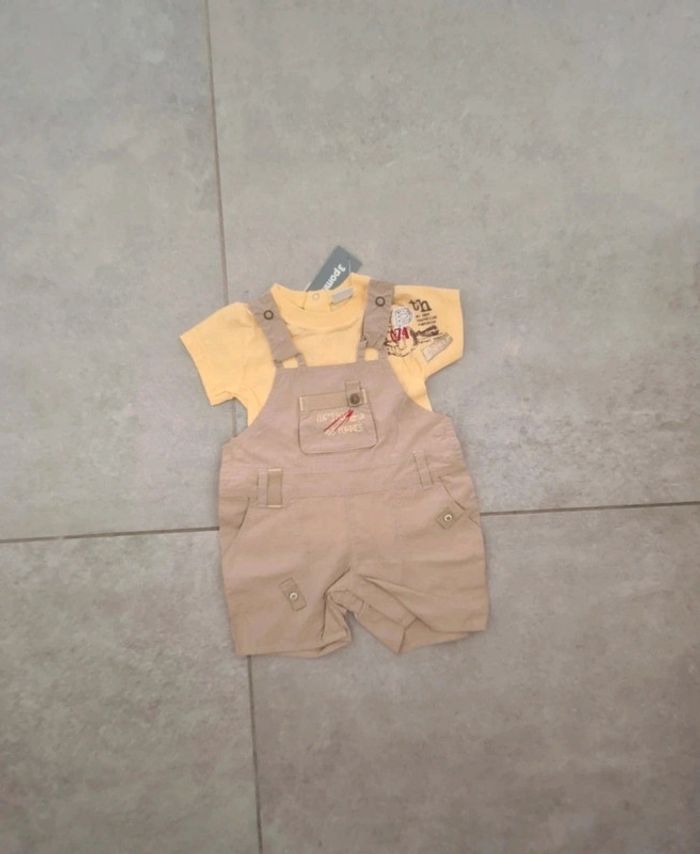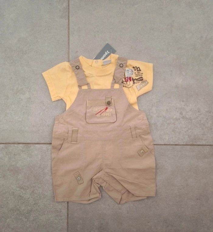 Ensemble 3 pommes 3 mois 1 salopette short et 1 tee shirt Neuf avec étiquette #dresskids3mboy #dresskids3pommes