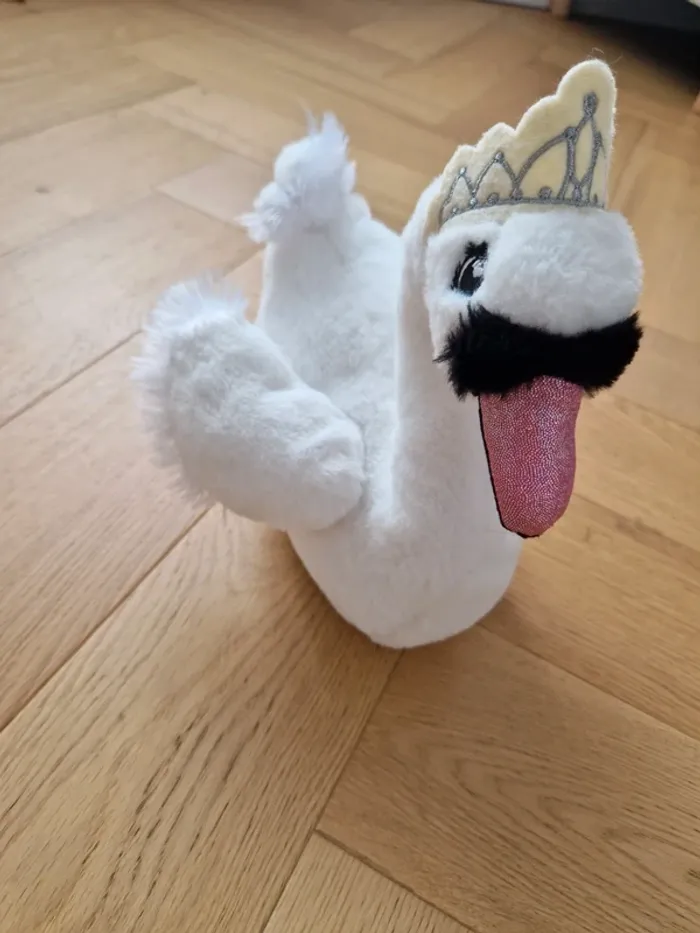 Peluche cygne de marque Bob ; Kaufhof ; 25 cm longueur et 26 cm environ hauteur ; Neuve sans étiquette