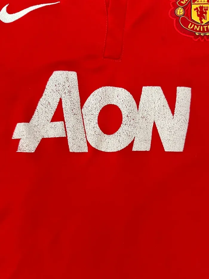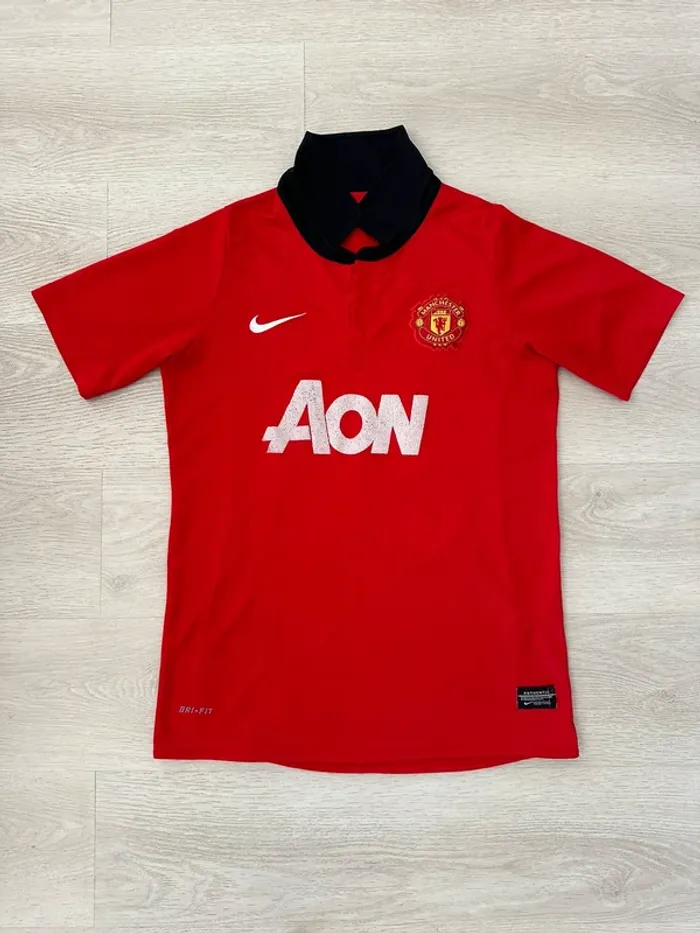 T-shirt football Manchester United 2013 / 2014 Taille XL enfant correspondant S adulte En bon état quelques traces d’usures et manque un bouton, voir photos