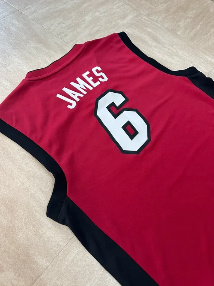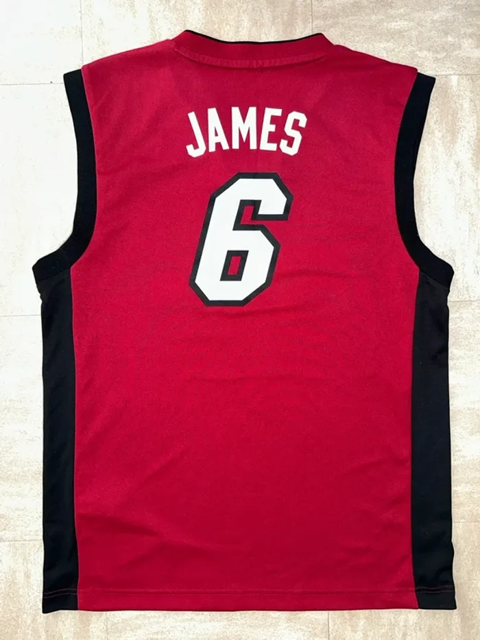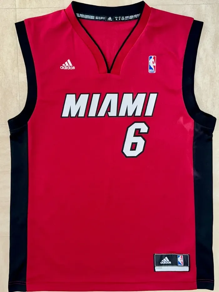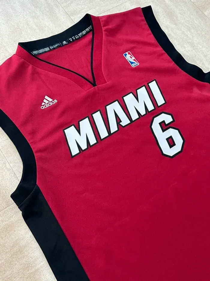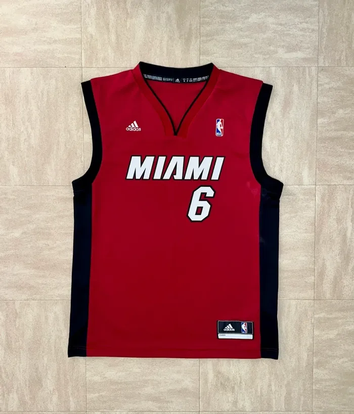 Vintage Maillot Adidas Men's Miami Heat Lebron James Nba Jersey N 6 Taille M Épaules 48 cm Largeur 53 cm Longueur 75 cm Petit accroc ,tache légère Football basketball foot américain sport basket Celtics boston lakers warriors bulls chicago