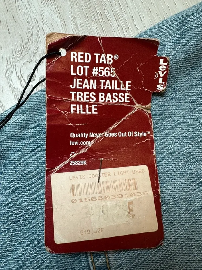 Jean levis vintage 565 taille très basse Femme taille W32 neuf avec étiquette en Francs Largeur 40 cm Longueur 106 cm Quelques taches dues au stockage des années. Des années 2000' collection retro 501 usa Denim cargo red tab coaster carhartt dickies