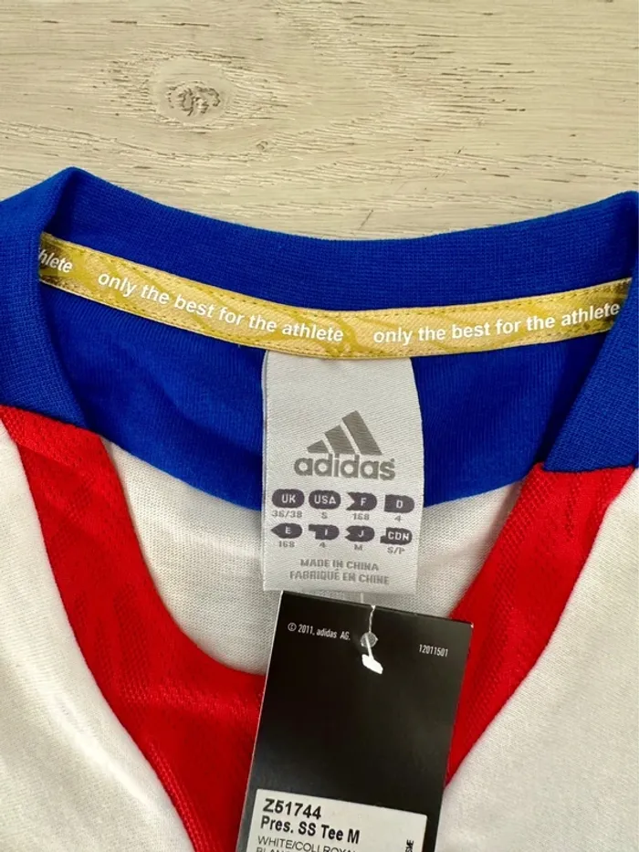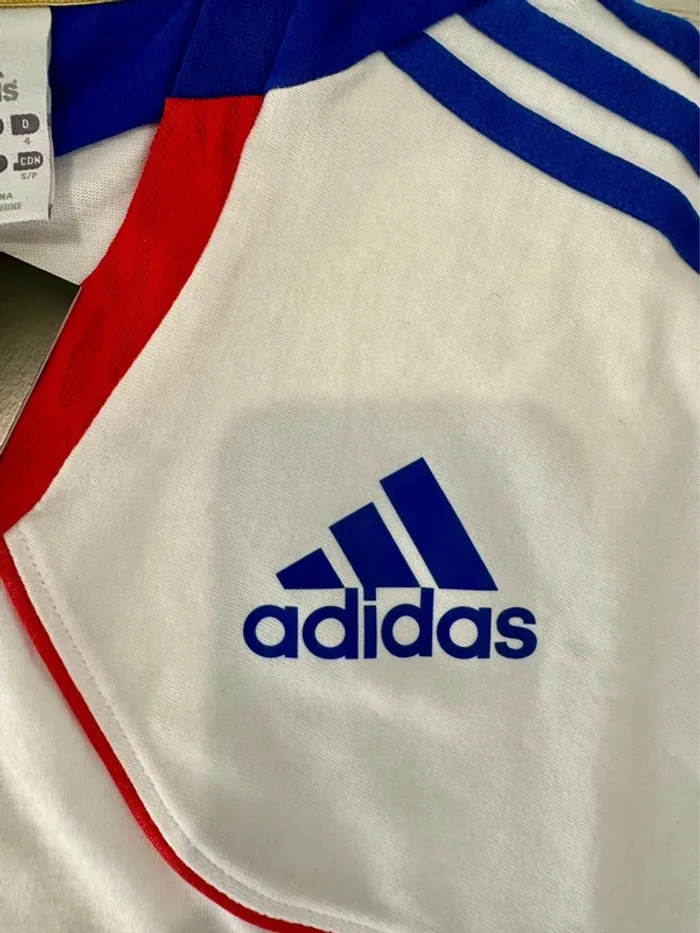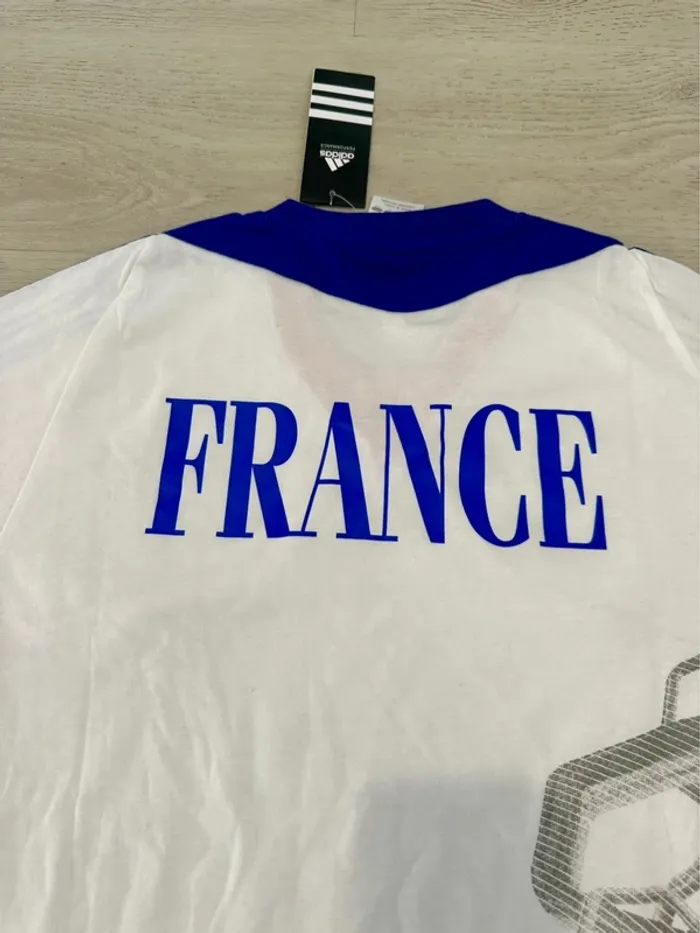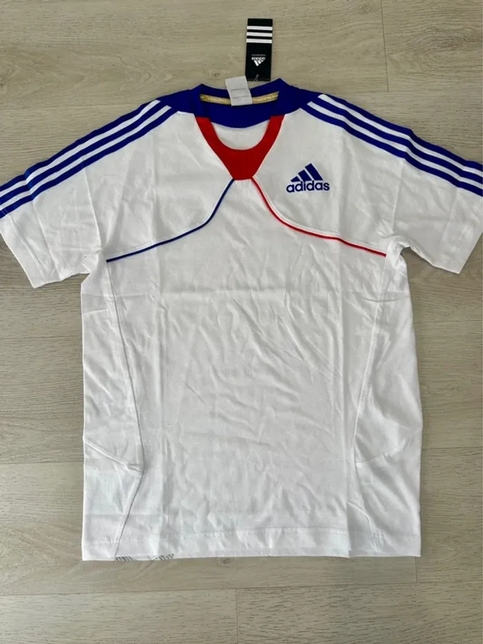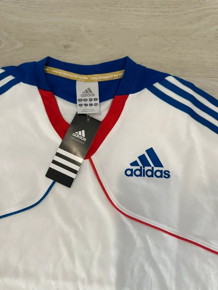 Maillot en coton Adidas vintage Équipe de France jeux olympiques de 2012 Angleterre Taille S Épaules 40 cm Largeur 48 cm Longueur 68 cm Athlétisme JO athlète Football foot training fitness londres