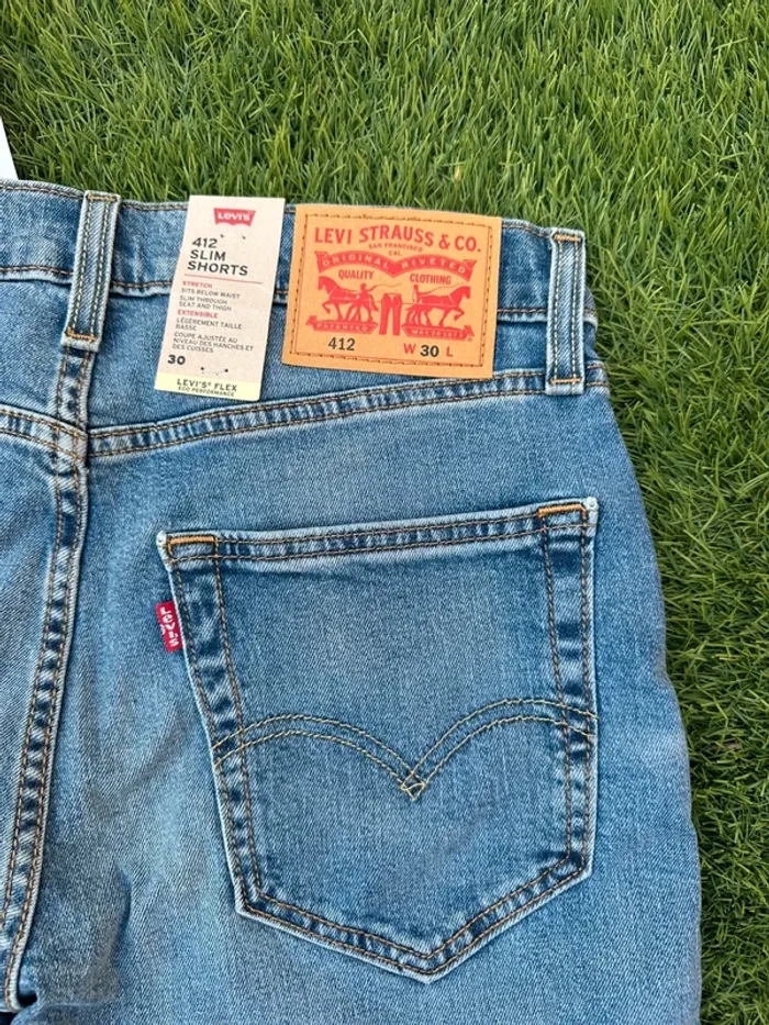 Bermuda jean levis 412 neuf avec étiquettes Taille w30 correspond au 40 voir mesures Taille 40 cm Longueur 44 cm Style dickies carhartt 501 denim bermuda levis cargo lauren face marlboro cargo