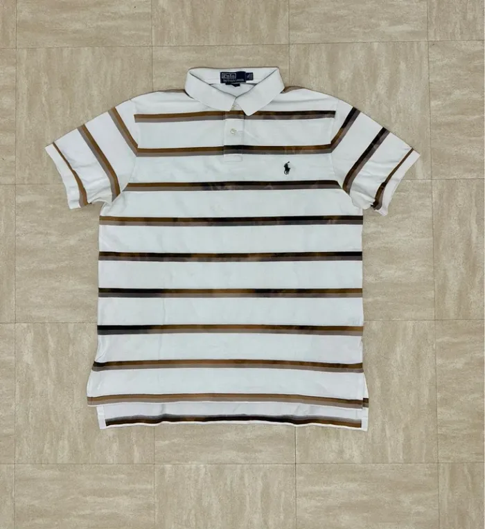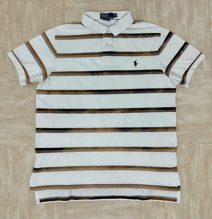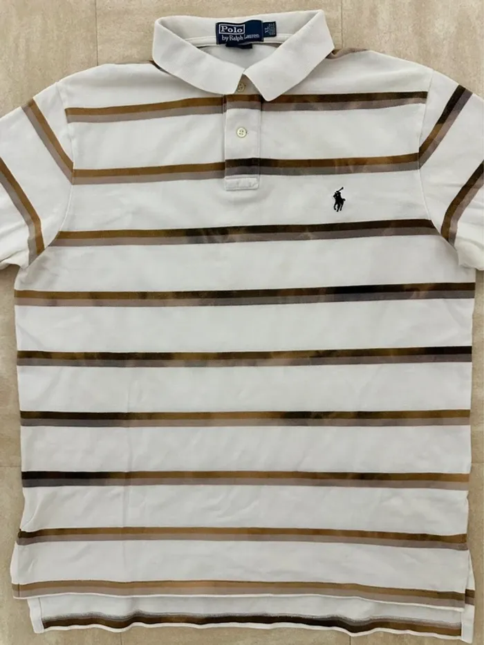 Vintage tshirt polo Ralph Lauren rayures avec effet déteint d’origine Taille XL Épaules 45 cm Largeur 57 cm Longueur 69 cm