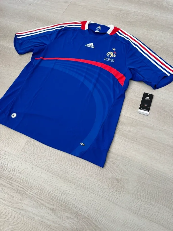 T-shirt fédération française de football Equipe de France 2007 / 2008 sport Vintage collection france paris soccer Coupe du monde jeux olympiques foot Taille XL neuf avec étiquette Épaules 48 cm Largeur 60 cm Longueur 79 cm Zidane champion league