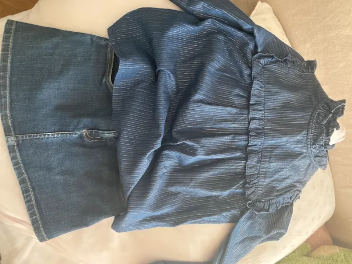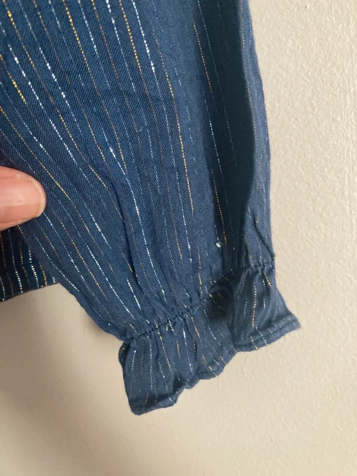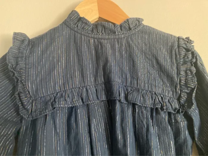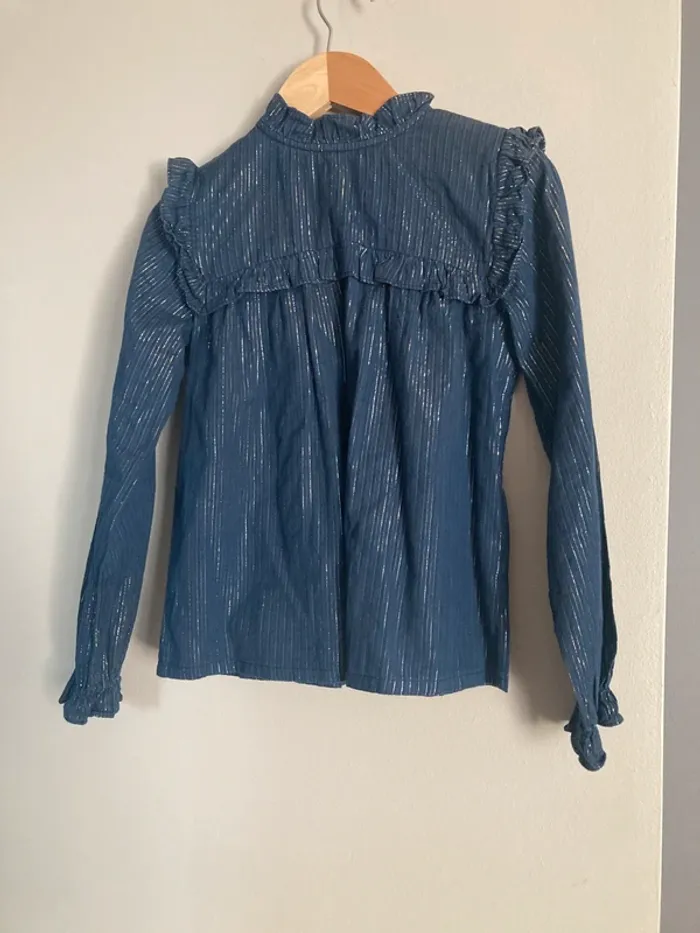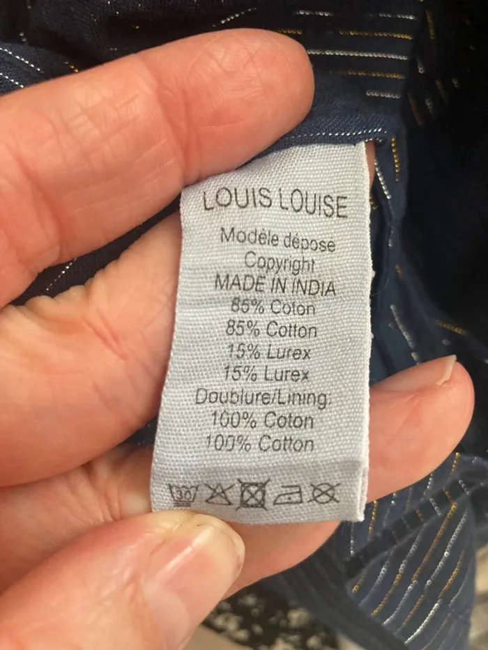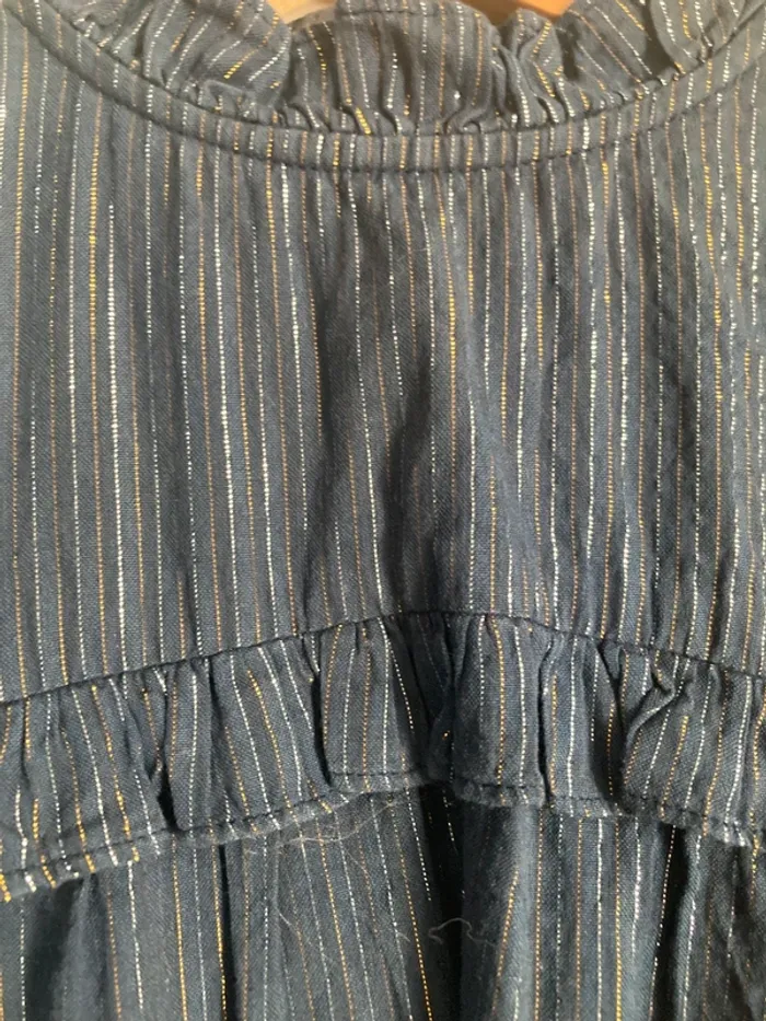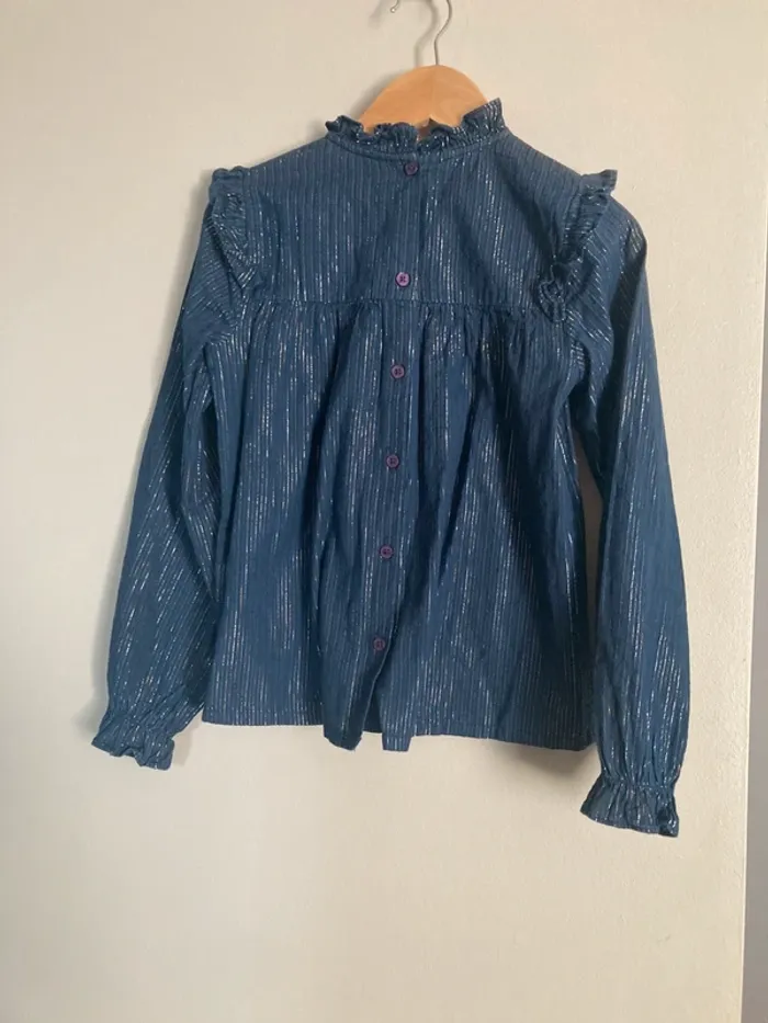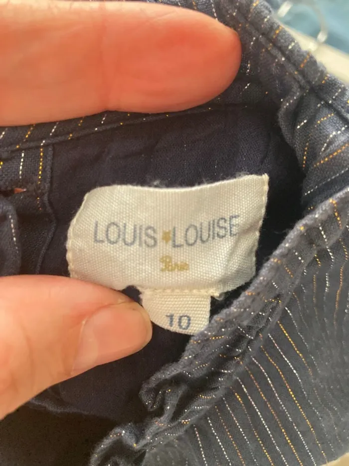 Louis Louise Jolie blouse bleue foncée rayures lurex multicolores Jolis détails Très bon état Taille 10 ans
