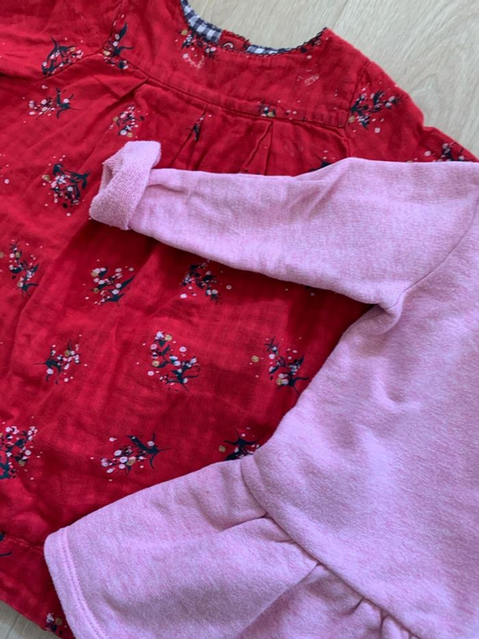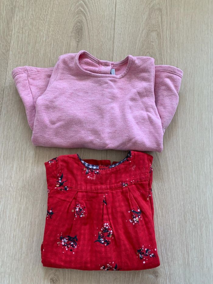 Lot 2 robes petit bateau 18 mois Coton 1 rouge à motif fleur 1 rose uni #bebefille18mois #fille18mois #robe18mois #petitbateau18mois #lot18moisfille