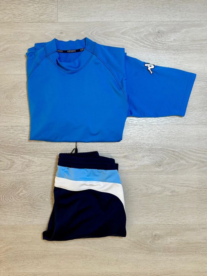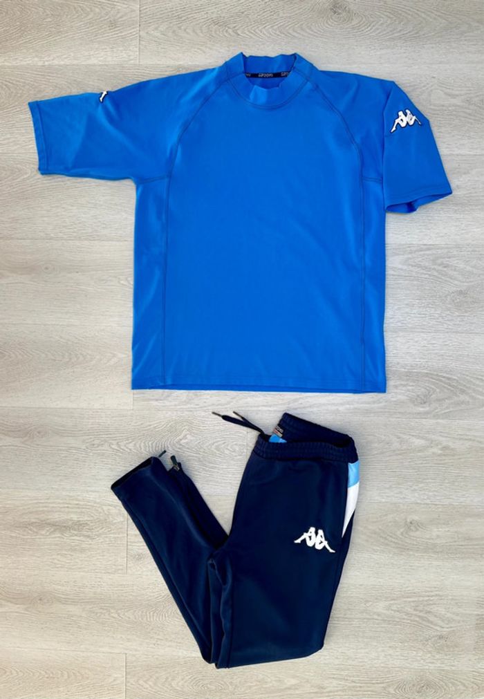 Survêtement tshirt + pantalon jogging Kapa Bas taille M et haut taille L mais petit . T-shirt taille L Épaules 46 cm Largeur 53 cm Longueur 67 cm Pantalon taille M Taille 40 cm Longueur 100cm Football foot training entraînement vintage Sport champion league fff ajax aj auxerre Fitness running courir fit padel