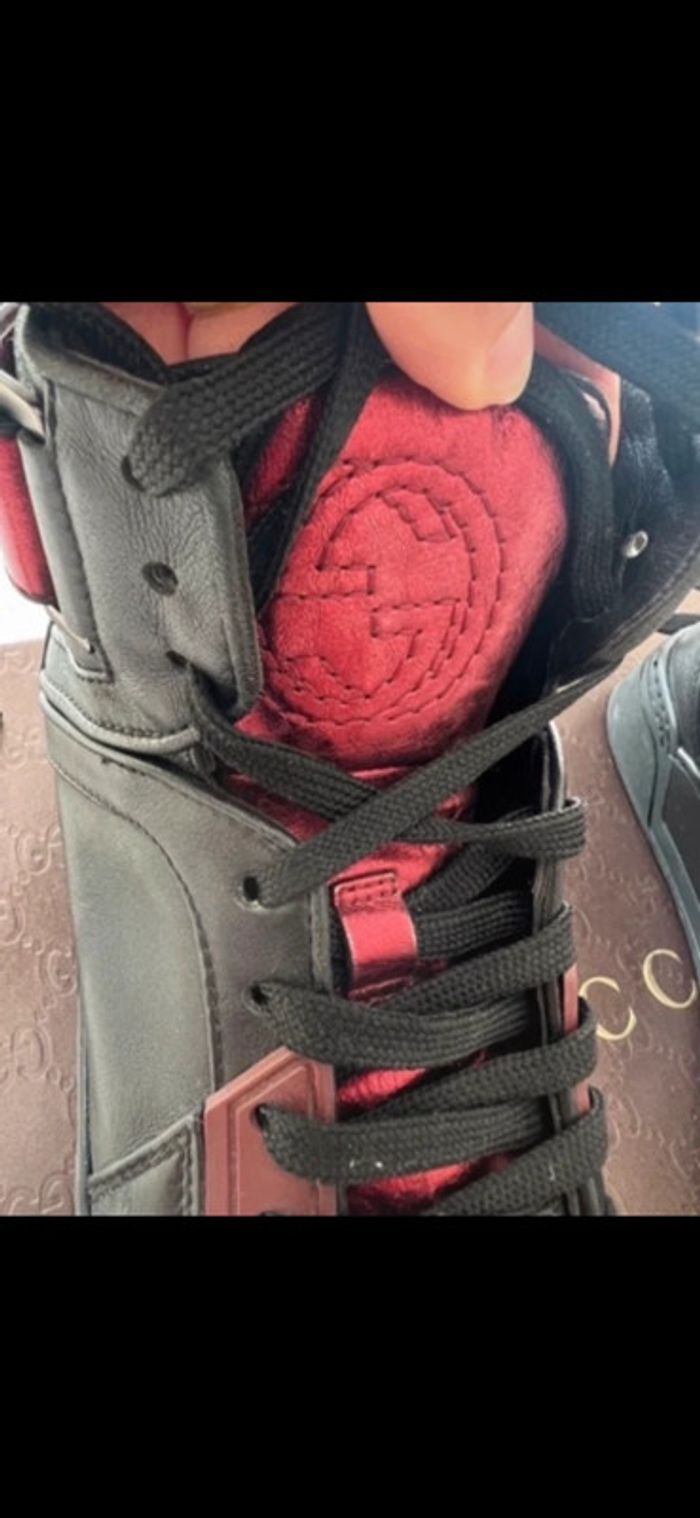 Baskets gucci en cuir de veau En 35 en très bon état Baskets haute Noir/ bordeaux Original, authentique Sneakers jordan louis chaussures bottes sport Running foot ski ville