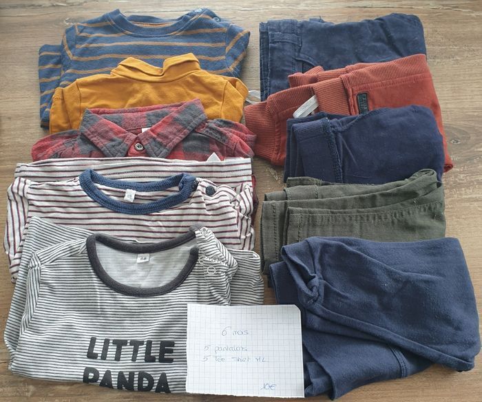 Vêtements 1 mois : 6 bodys manche courte 3 pantalons 3 tee-shirt manche courte 3 mois : 1 salopette 3 tee-shirt manche longue 4 pantalons 6 mois : 5 pantalons 5 tee-shirt manche longue 12 mois : 2 salopettes 4 pantalons 4 tee-shirt manche longue 18 mois : 2 pantalons 3 bodys manche courte 5 short 4 tee-shirt manche courte 4 tee-shirt manche longue 3 polos manche courte 1 salopette 3 vestes 6 mois 1 veste 9 mois 3 vestes 12 mois 1 paire de chaussure T 20 neuve 2 paires de chaussure T 22 en bon état. Au total: 9 bodys manche courte 18 pantalons 7 tee-shirt manche courte 4 salopettes 16 tee-shirt manche longue 5 shorts 3 polos manche courte 7 vestes 3 chaussures Je n'ai pas pu mettre ttes les photos. Si besoin je vous les enverrais.