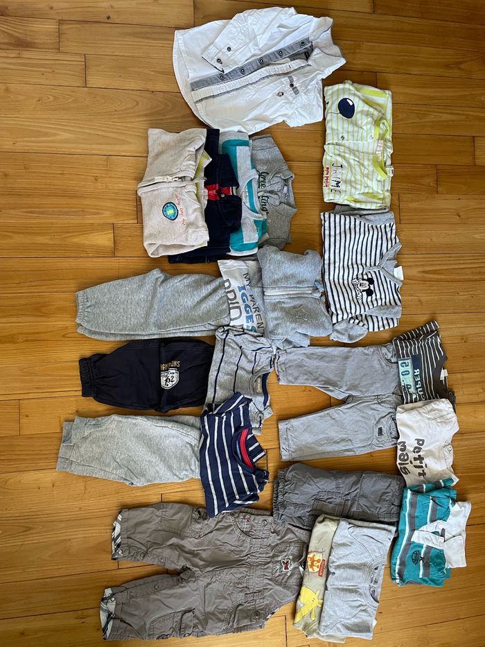 Lot 6 mois 3 joggings 2 pantalons 1 salopette 3 sweat 2 pulls 1 chemise 8 tee-shirts manche longue 2 pyjamas velour