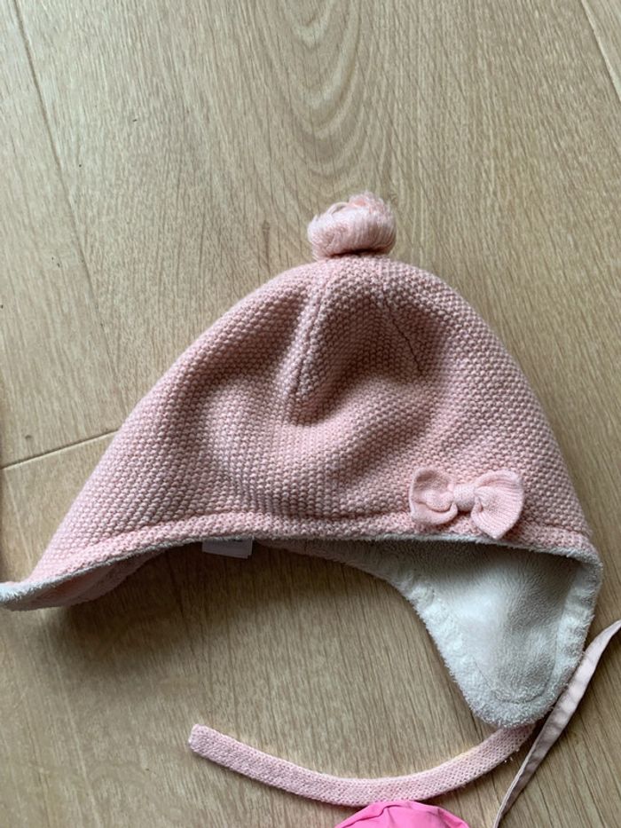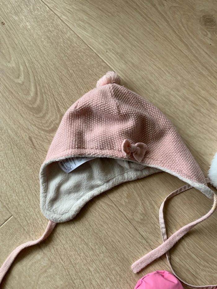Lot hiver 6 mois bébé fille 2 chapeau 1 Sergent major maille 1 fourré #bebefille6mois #chapeau6mois #moufles6mois #lot6mois #sergentmajor6mois #weedze6mois